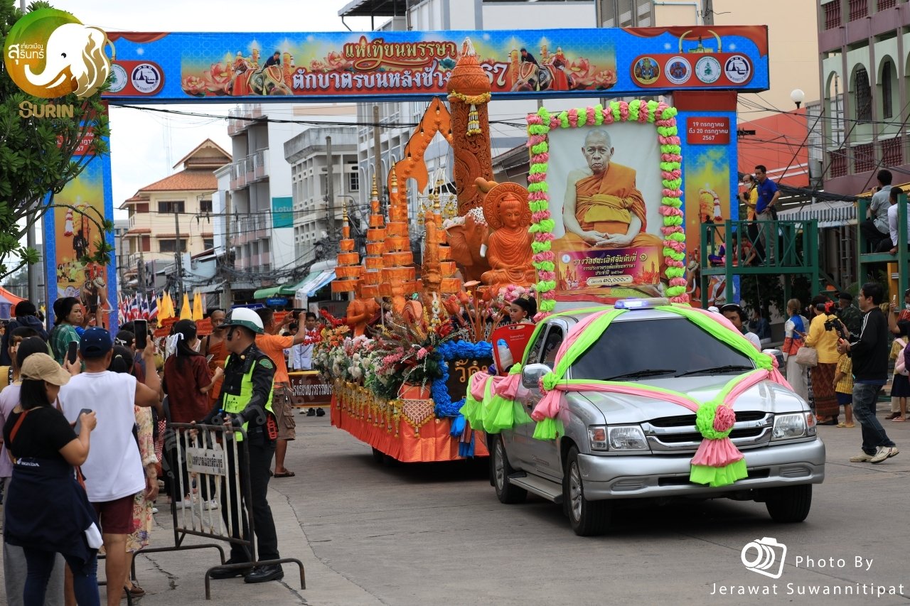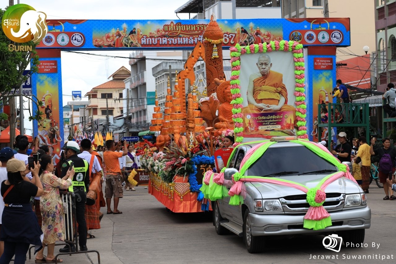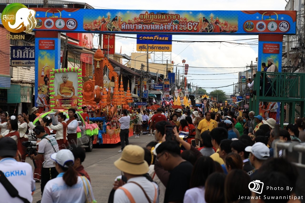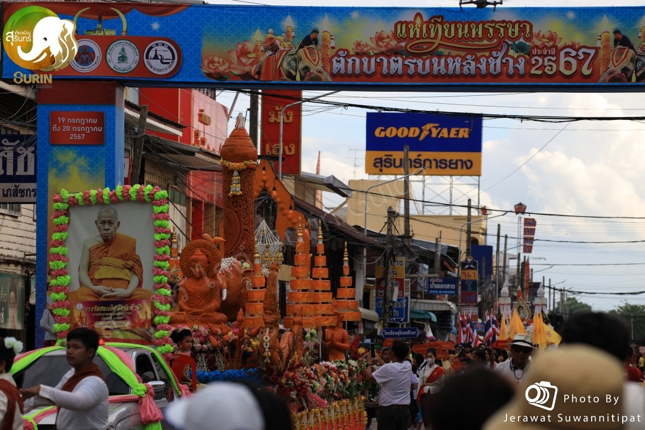 จังหวัดสุรินทร์ นอกจากจะเป็นดินแดนแห่งช้างแล้ว ยังมีประเพณีอันงดงามที่สะท้อนถึงความศรัทธาในพระพุทธศาสนาและวัฒนธรรมท้องถิ่นอย่างชัดเจน นั่นคือ มหกรรมแห่เทียนพรรษาและตักบาตรบนหลังช้าง ซึ่งจัดขึ้นเป็นประจำในช่วงเทศกาลเข้าพรรษา เป็นหนึ่งในกิจกรรมที่โดดเด่นและมีเอกลักษณ์ไม่เหมือนใคร
