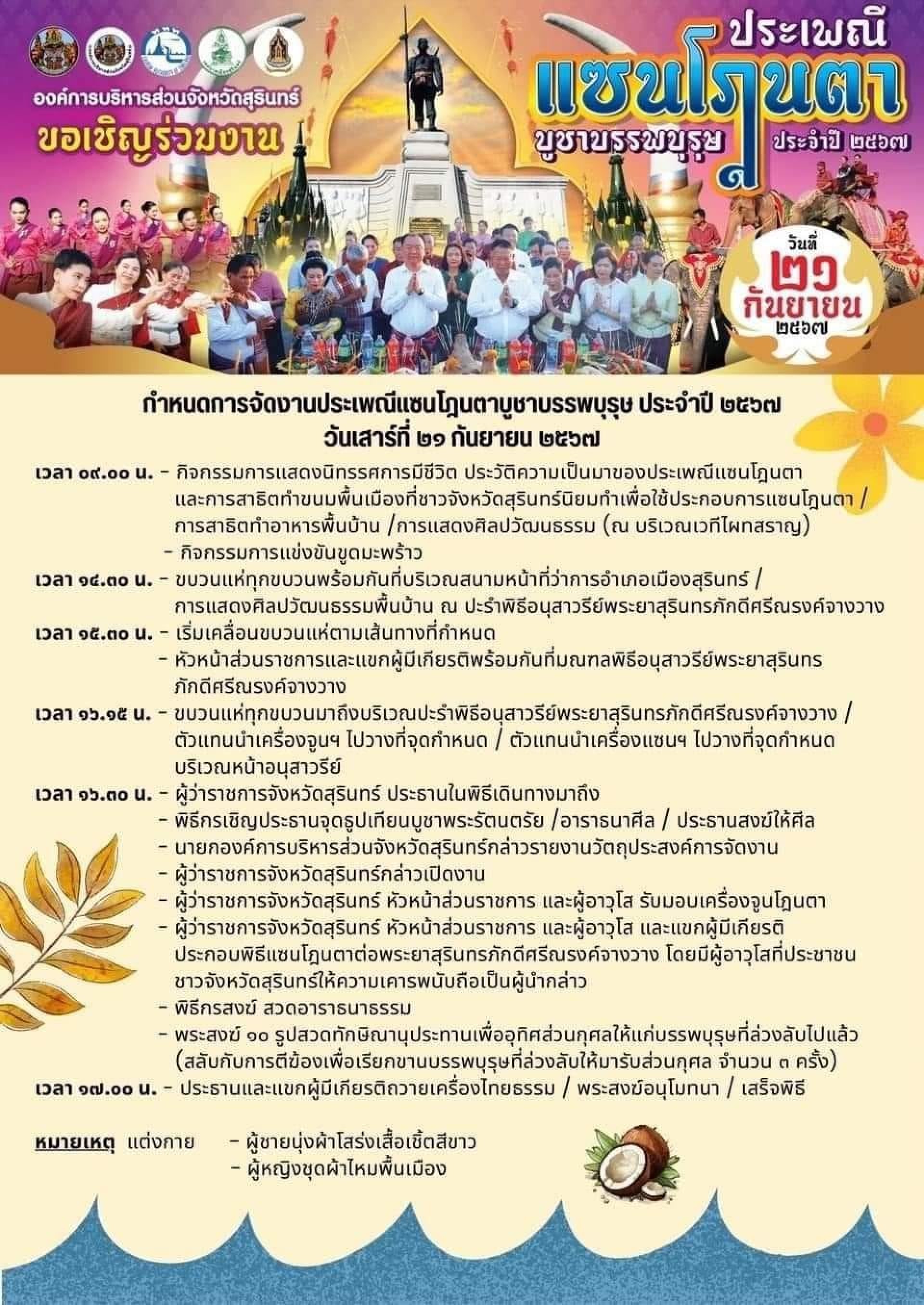 กำหนดการประเพณีแซนโฎนตา จังหวัดสุรินทร์ ประจำปี2567
