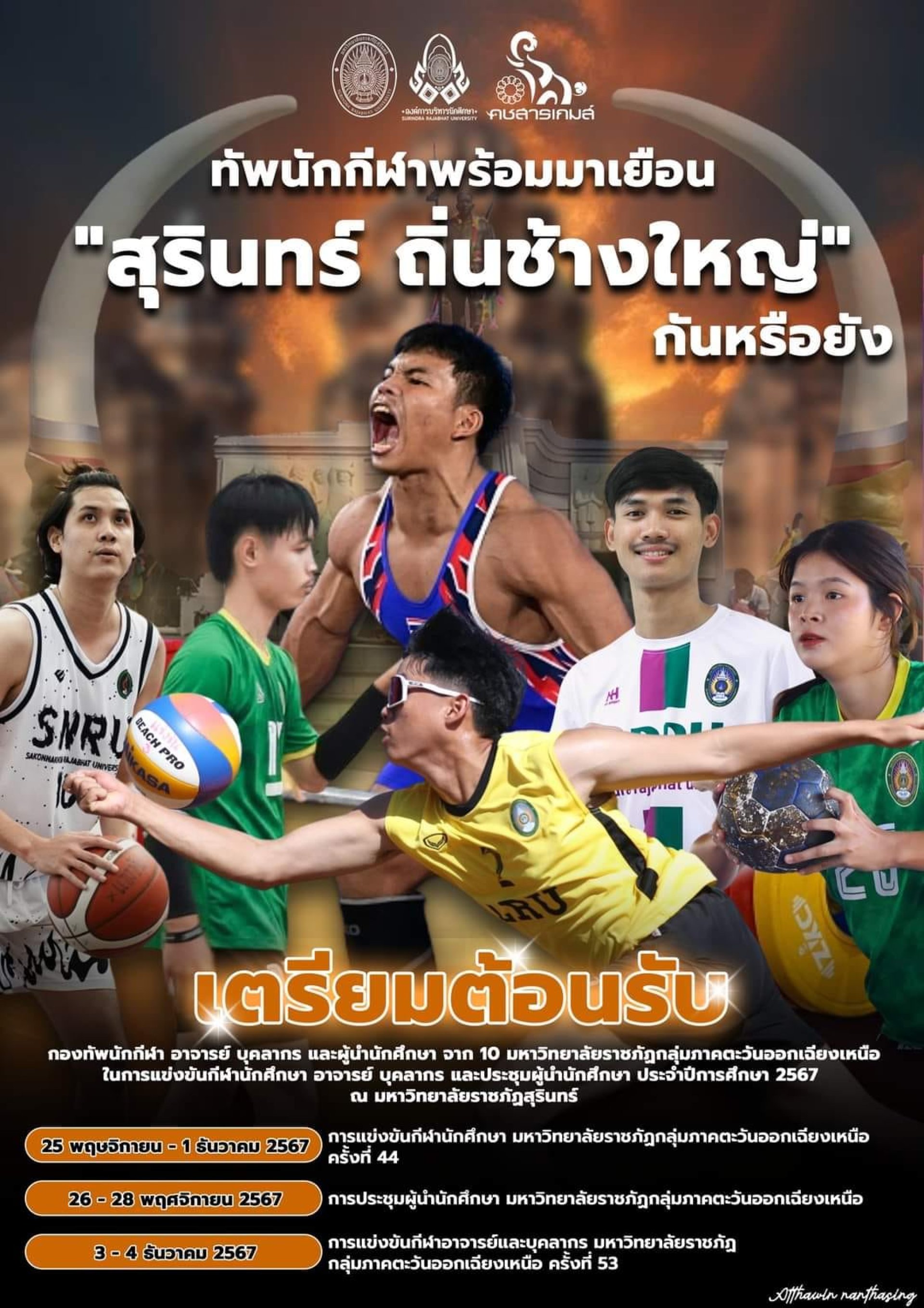 เตรียมพบกับ การแข่งขันกีฬามหาวิทยาลัยราชภัฏกลุ่มภาคตะวันออกเฉียงเหนือ ประจำปี 2567