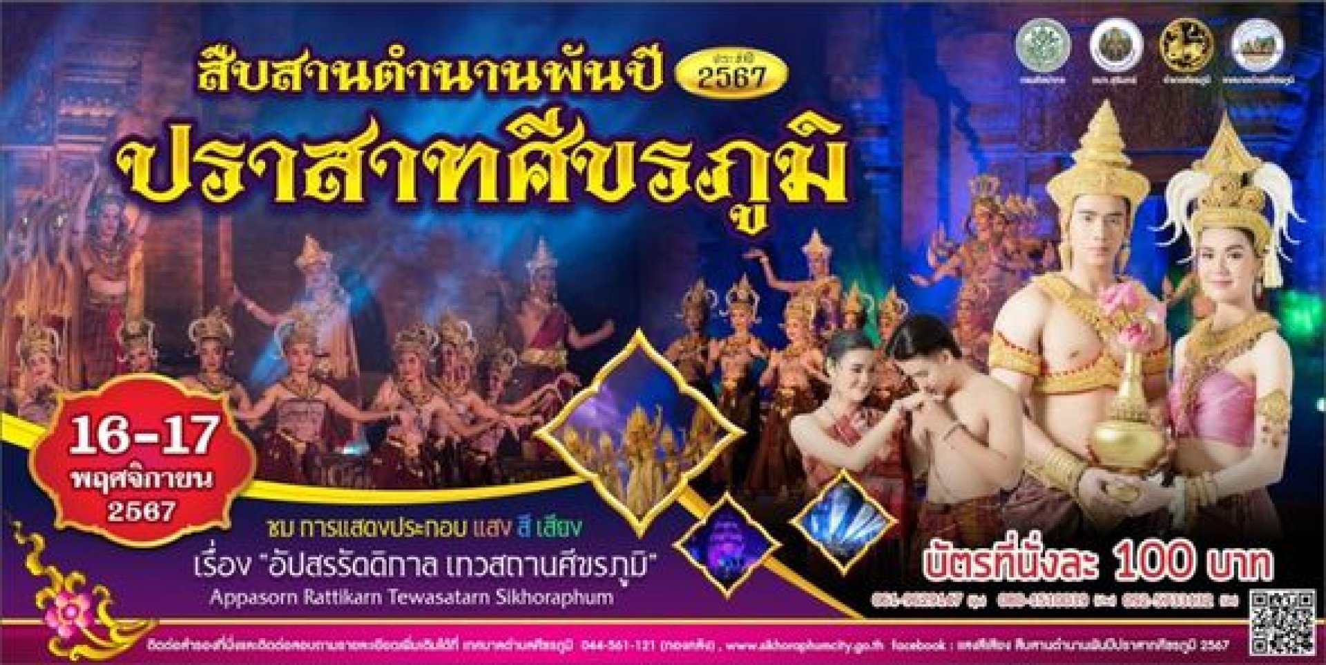 สำรองที่นั่ง ชมการแสดง แสง สี เสียง สืบสานตำนานพันปีปราสาทศีขรภูมิ ประจำปี 2567 วันเสาร์ที่ 16 พฤศจิกายน 2567 และวันที่อาทิตย์ที่ 17 พฤศจิกายน 2567