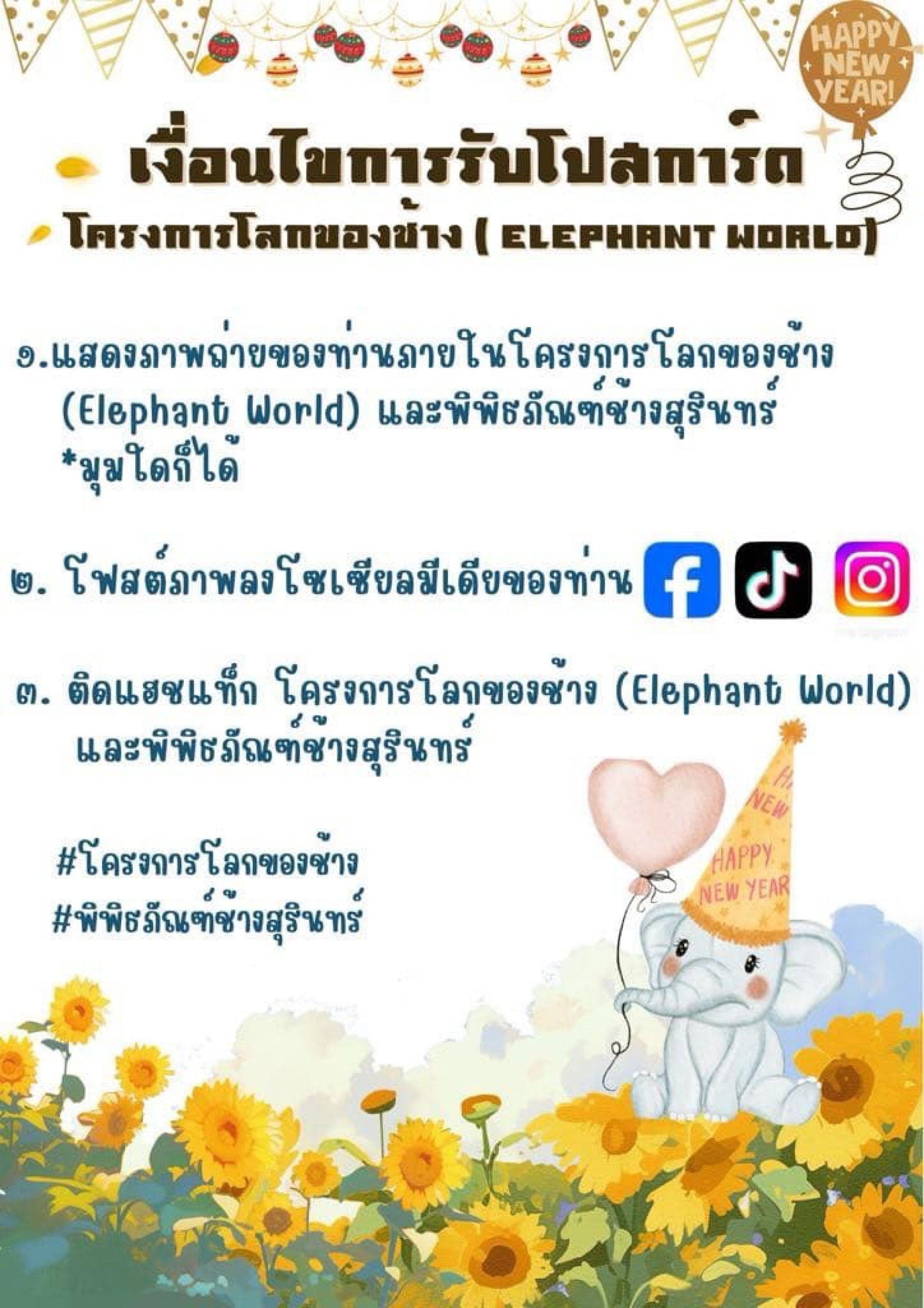 3. ติดแฮชแท็ก โครงการโลกของช้าง (Elephant World) และพิพิธภัณฑ์ช้างสุรินทร์