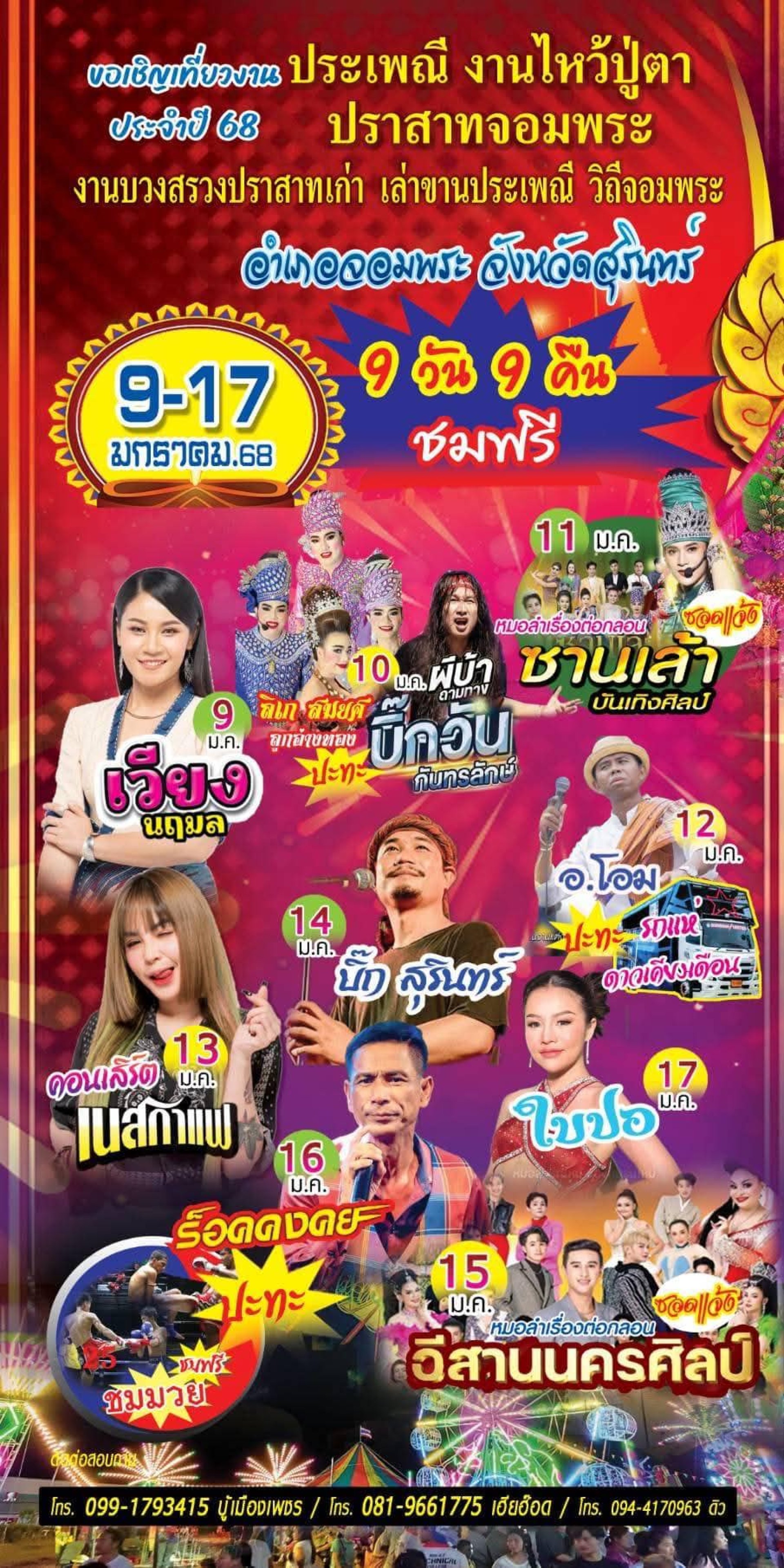 ช่วงนี้มีงานที่อำเภอจอมพระ ประเพณี งานไหว้ปู่ตา ปราสาทจอมพระ ประจำปี2568