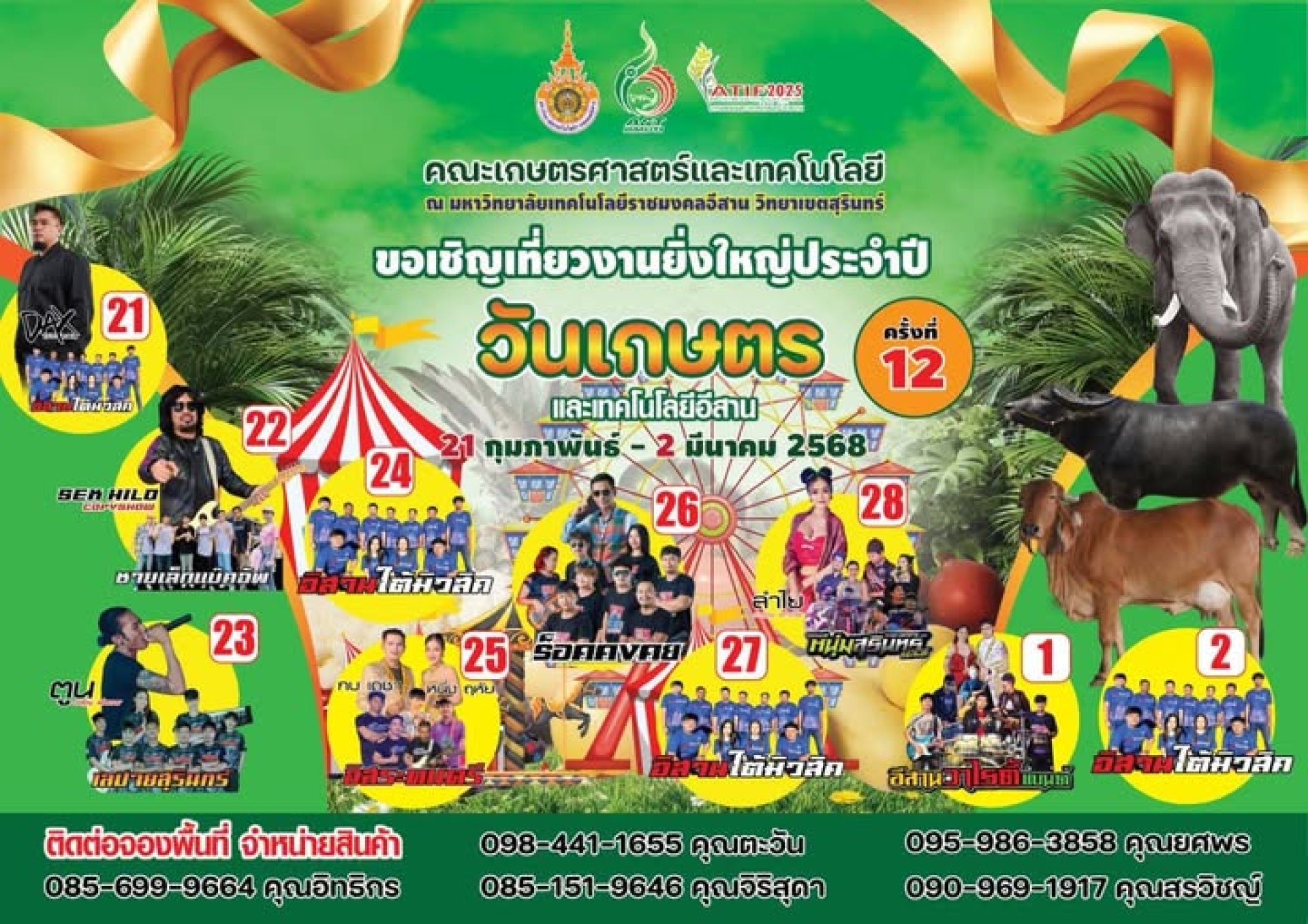 ขอเชิญเข้าร่วมฝึกอบรมด้านเกษตรและเทคโนโลยี ใน "#งานวันเกษตรและเทคโนโลยีอีสาน ครั้งที่ 12"