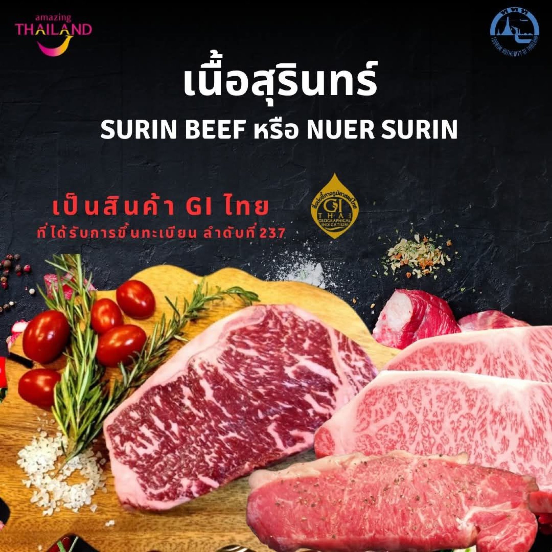 เนื้อสุรินทร์ ไม่ธรรมดาแล้วนะ! เป็นสินค้า GI ไทยที่ได้รับการขึ้นทะเบียน ลำดับที่237