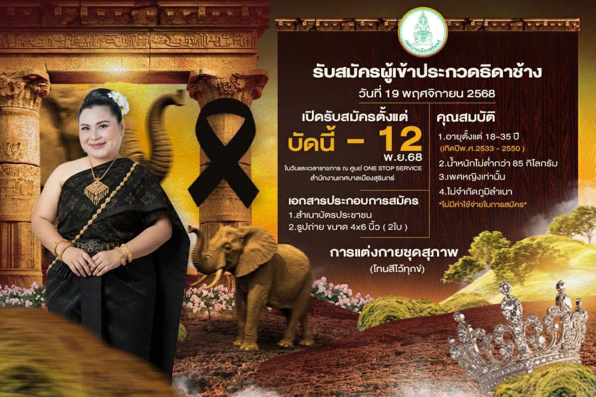 เทศบาลเมืองสุรินทร์ รับสมัครผู้เข้าประกวด ธิดาช้างจังหวัดสุรินทร์ ประจำปี 2568