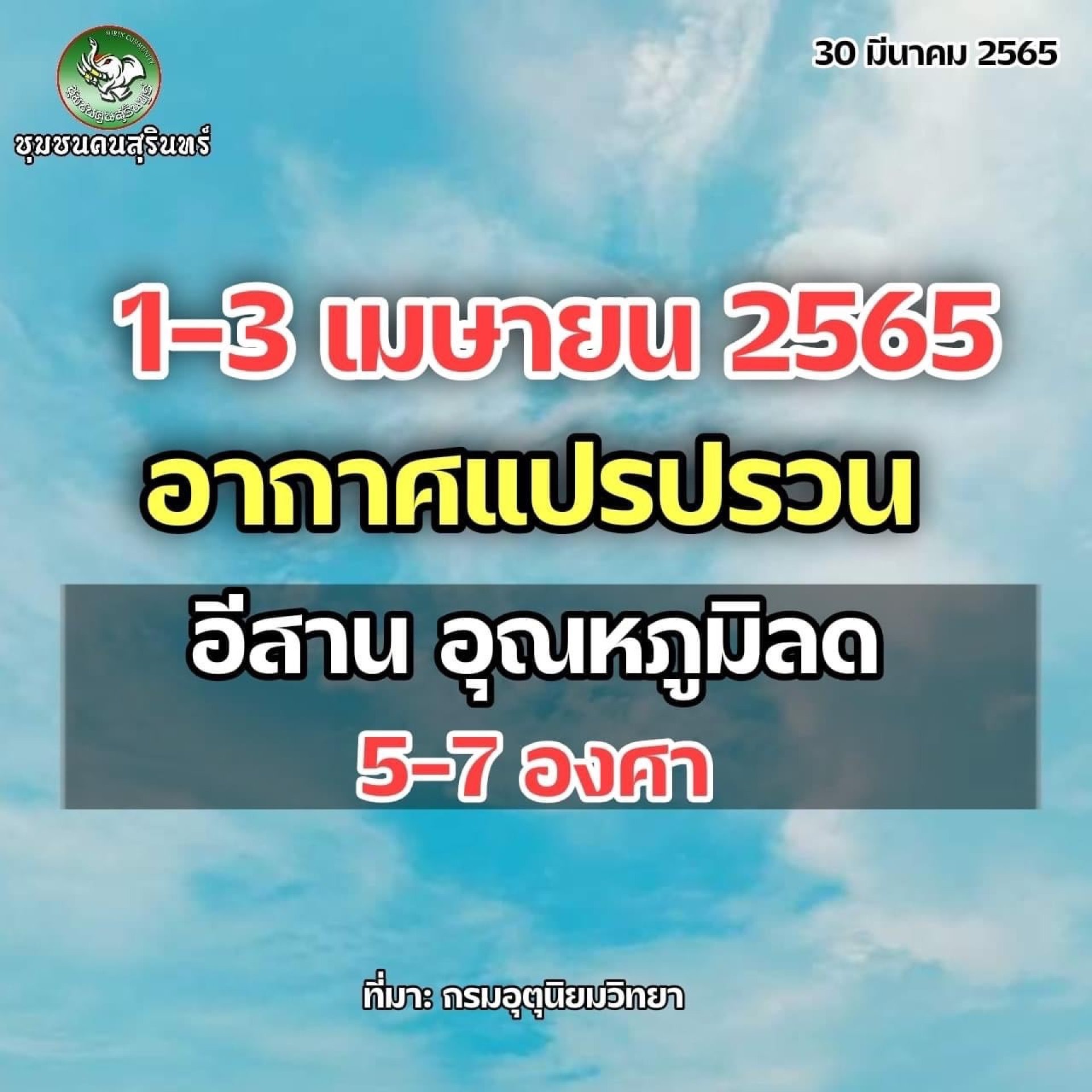 ลมหนาวจากจีนจะลงมาปกคลุมประเทศไทยตอนบน ทำให้ภาคอีสานอุณหภูมิลดฮวบ 5-7 องศาฯ