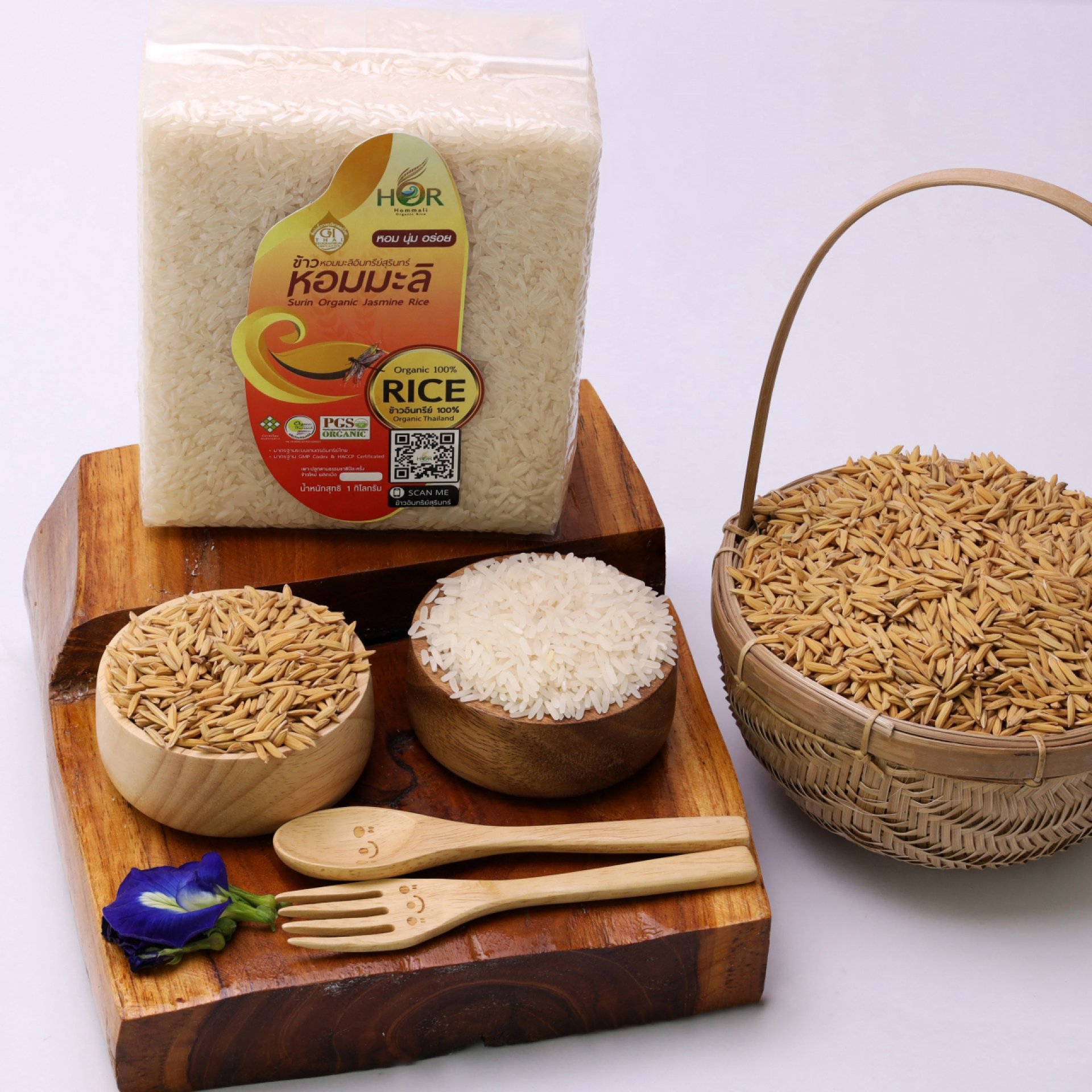 ผลิตภัณฑ์ข้าวสารหอมมะลิสุรินทร์แท้100% จากจังหวัดสุรินทร์ถิ่นเมืองช้าง ข้าวหอมมะลิจากสุรินทร์จะมีลักษณะเด่นที่เฉพาะตัว ข้าวเปลือกมีสีฟางเมล็ดข้าวขาว เรียวยาว ขาวใส เป็นเงาเลื่อมมัน ข้าวมีท้องไข่น้อย และมีกลิ่นหอม