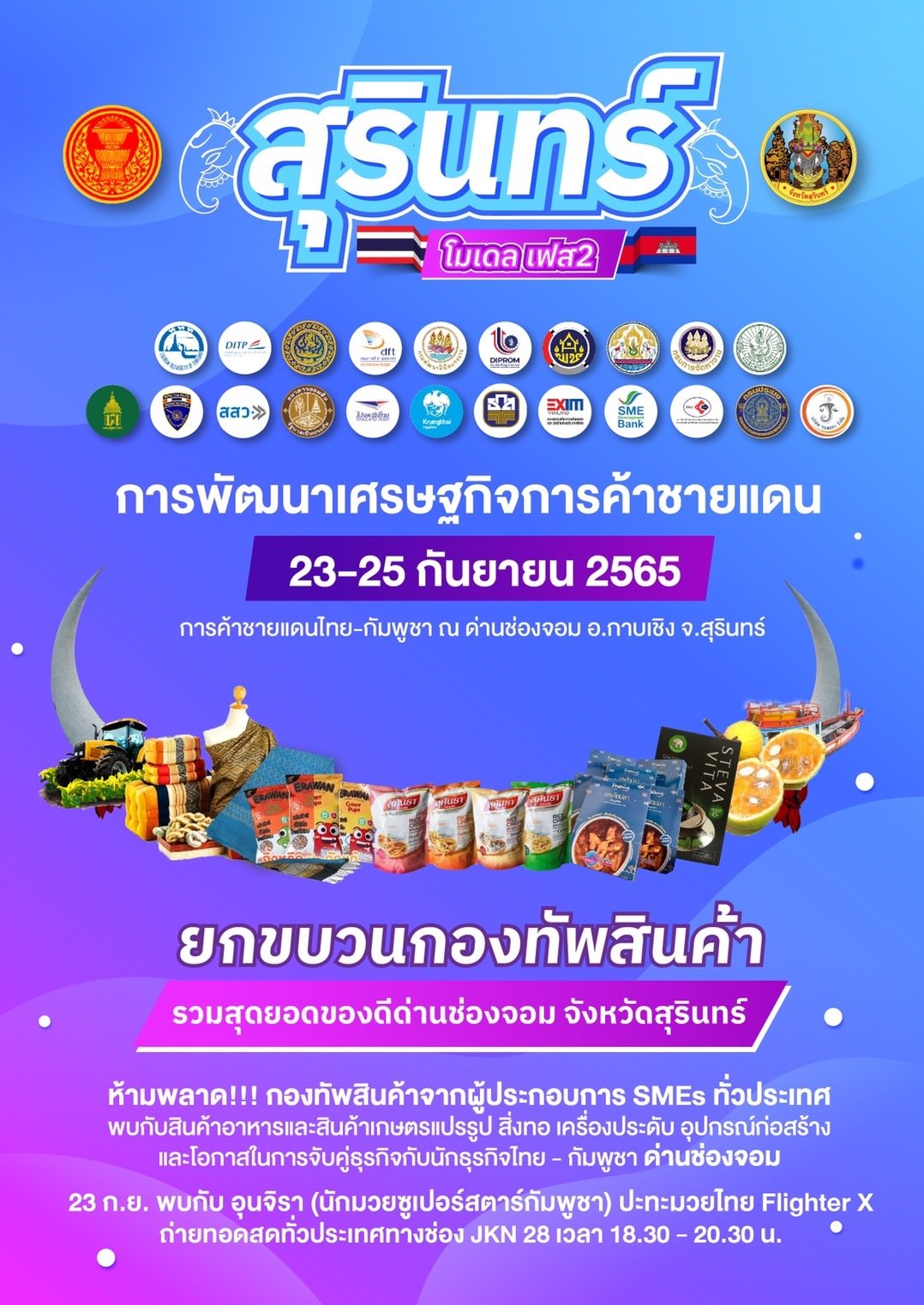 งานสุรินทร์โมเดล เฟส 2 วันที่ 23-25 กันยายน 2565 ด่านชายแดนช่องจอม อำเภอกาบเชิง จ.สุรินทร์ สุดยอดของดีด่านช่องจอม