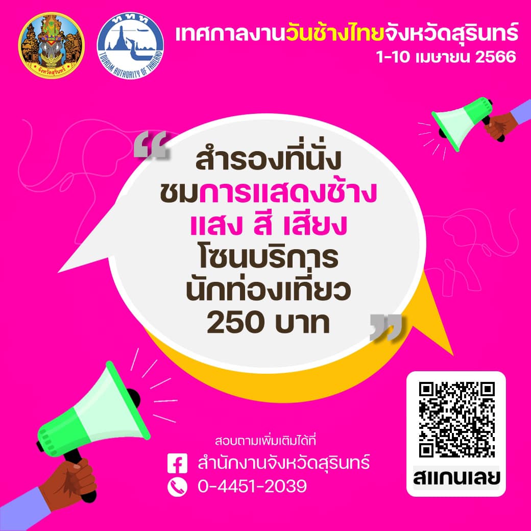 เทศกาลงานวันช้างไทยจังหวัดสุรินทร์ ครั้งที่ 2 สำรองที่นั้ง