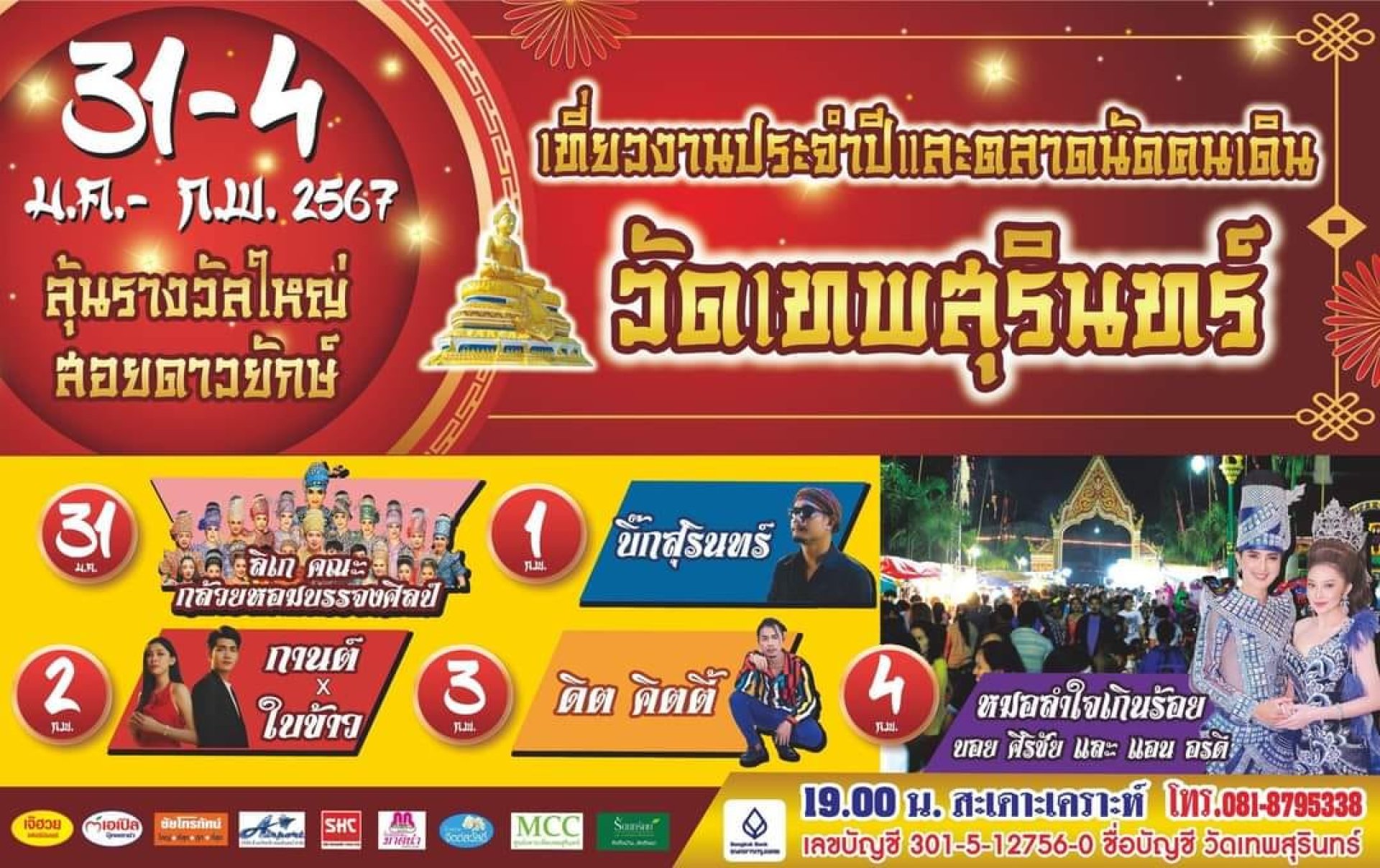 งานประจำปีและตลาดนัดคนเดิน วัดเทพสุรินทร์ 2567