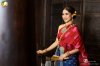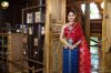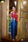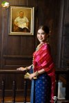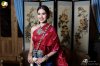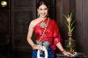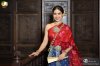 สไบจีบเป็นแพรไหม สีทับทิมเหลือบแดงลายช่อดอกไม้