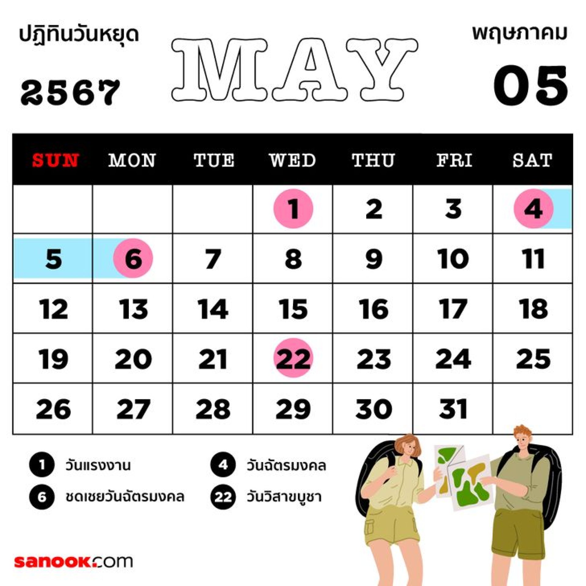 ปฏิทินวันหยุดเดือนพฤษภาคม 2567 มีวันหยุดวันไหนบ้าง