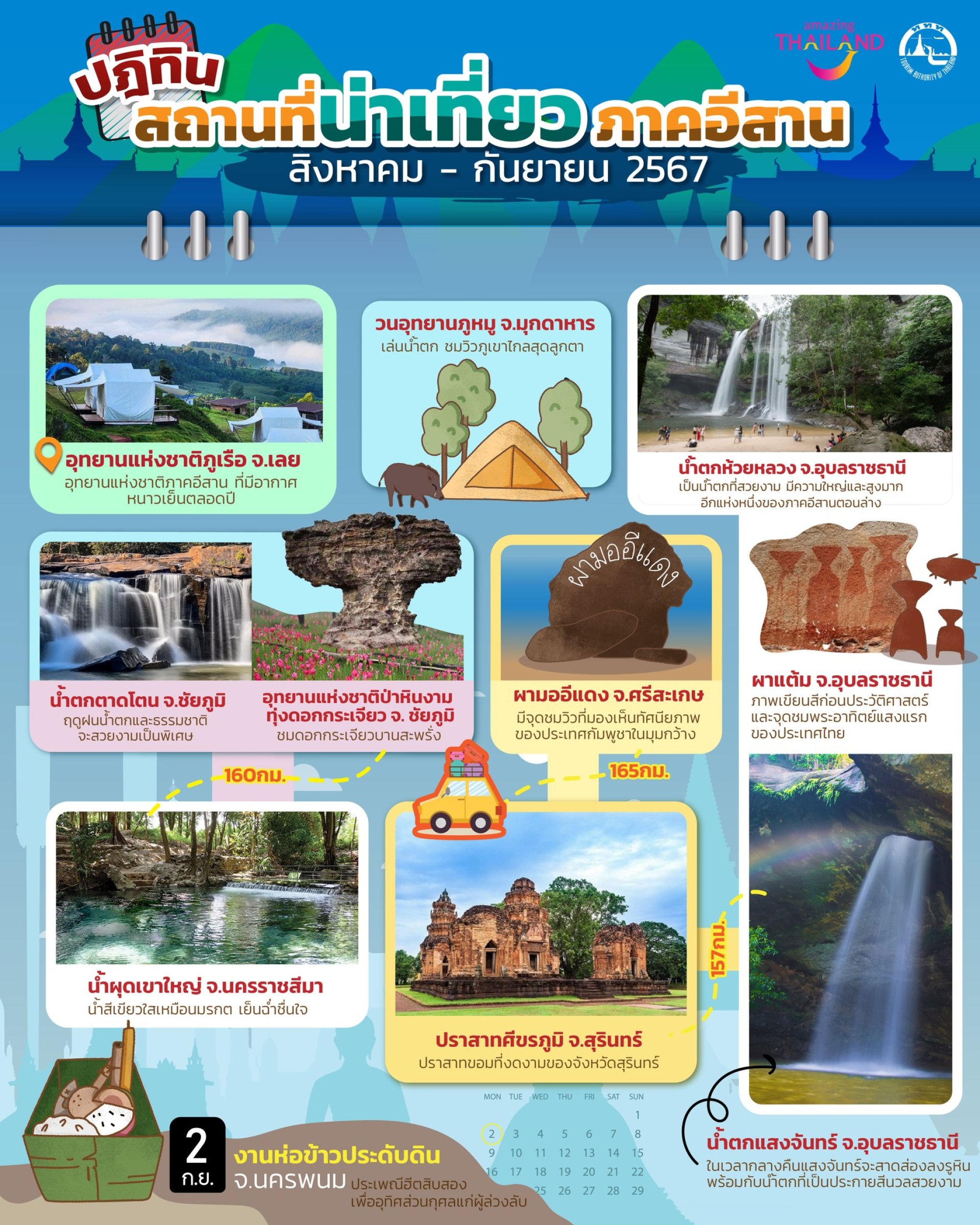 ปฎิทินสถานที่น่าเที่ยวภาคอีสาน สิงหาคม-กันยายน 2567