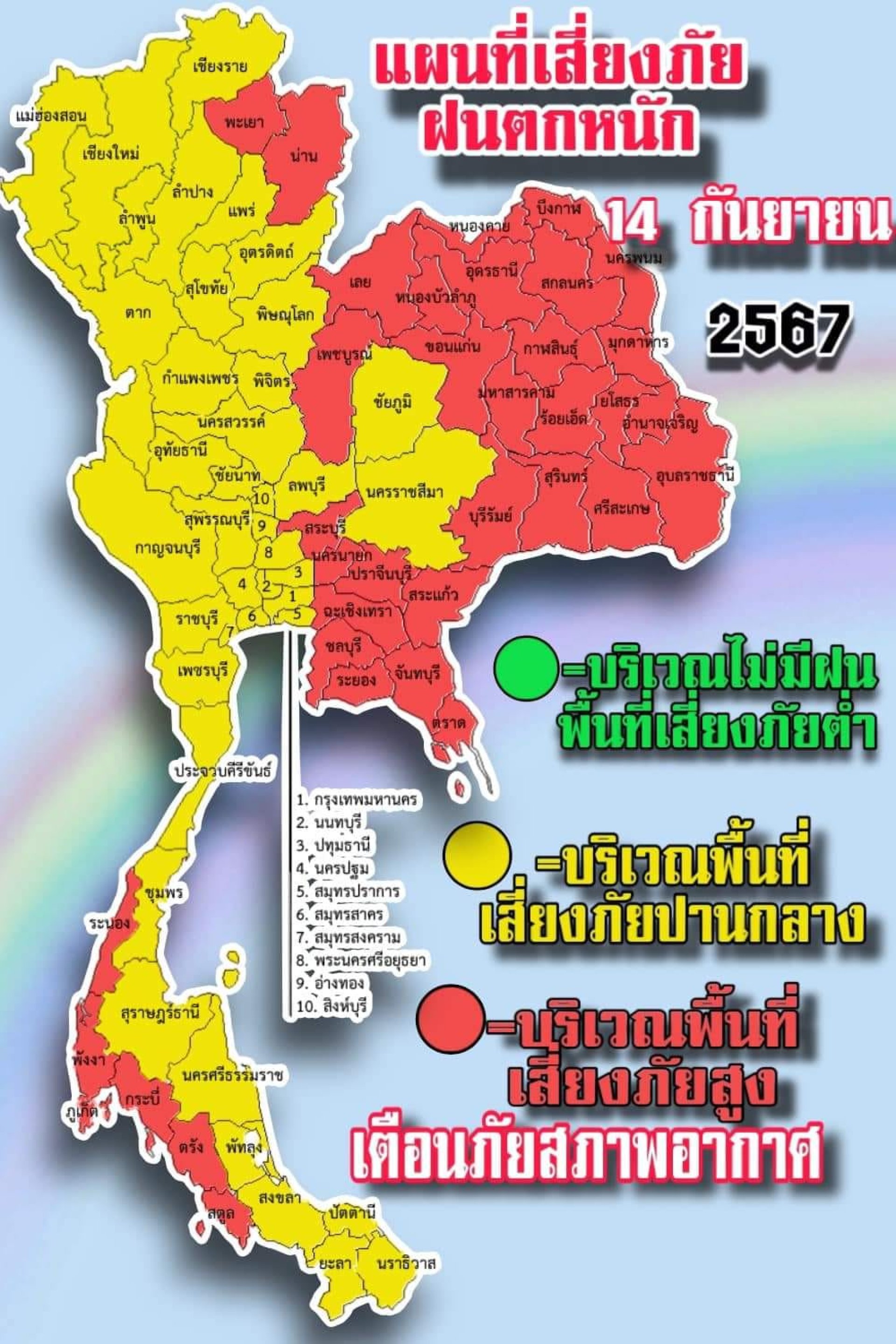 แผนที่เสี่ยงภัยพื้นที่จะมีฝนตกหนัก- หนักมาก (วันที่ 14 กันยายน 2567)