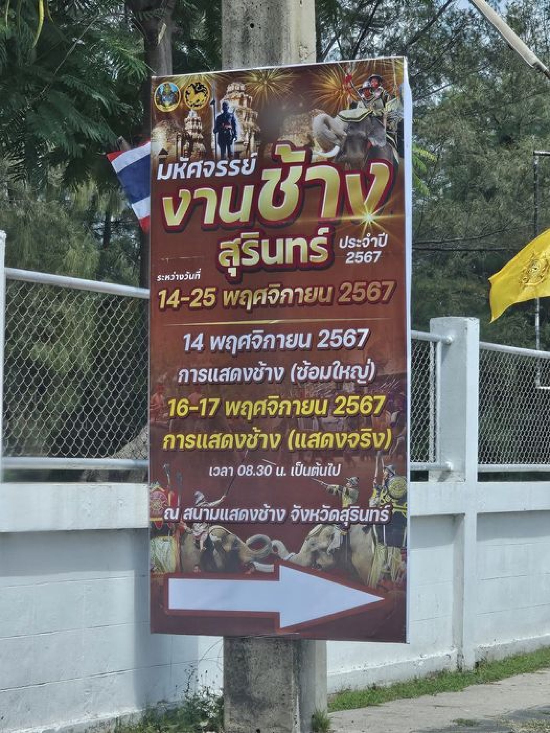 16-17 พฤศจิกายน 2567 : งานแสดงช้างจังหวัดสุรินทร์ ณ สนามแสดงช้าง อ.เมืองสุรินทร์