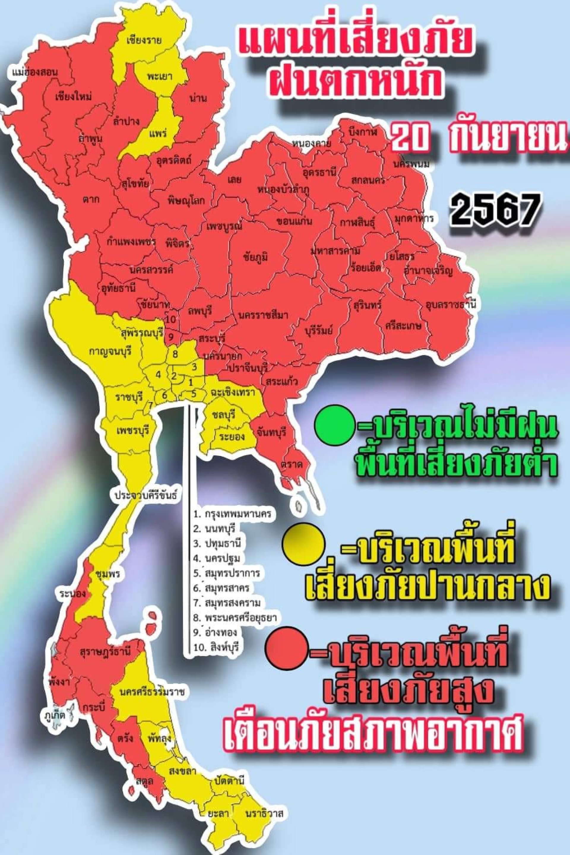 แผนที่เสี่ยงภัยฝนตกหนัก (20 กันยายน 2567)