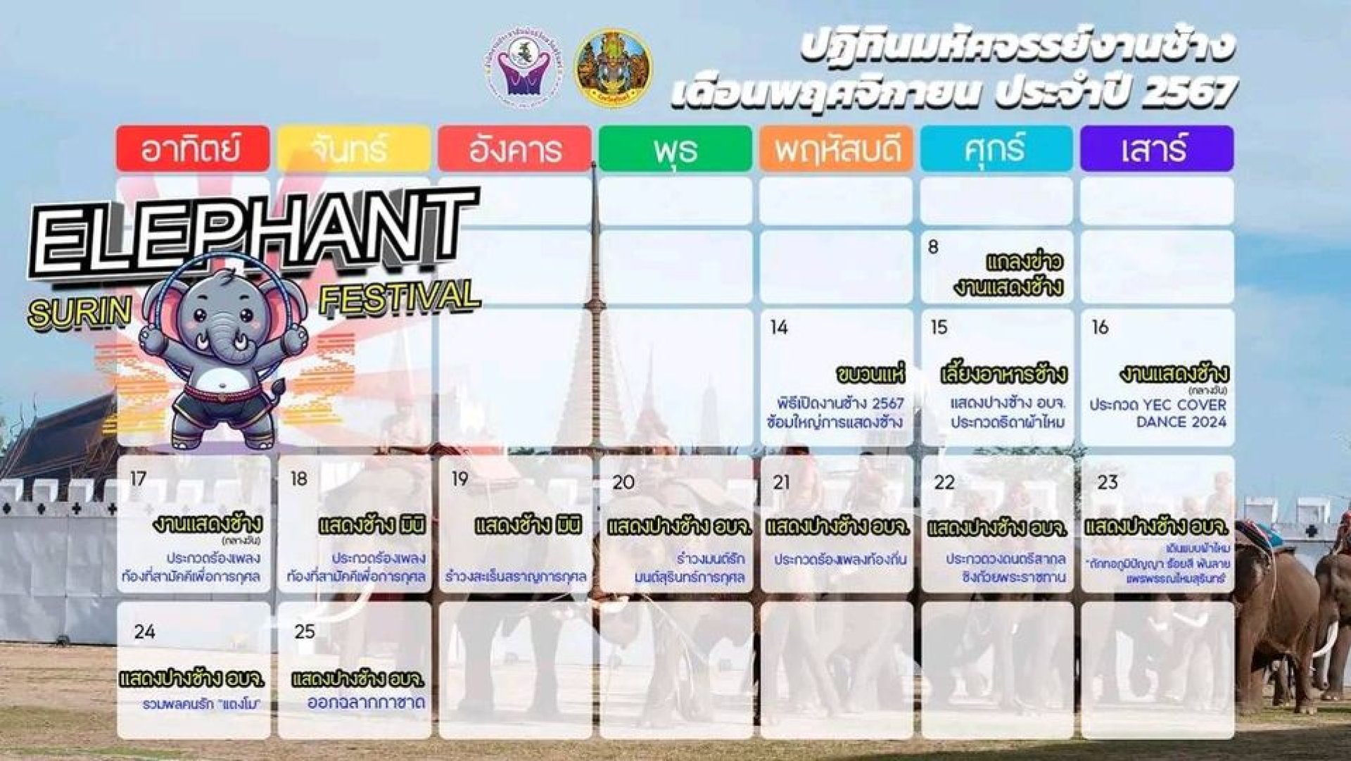 ปฏิทินมหัศจรรย์งานช้างเดือนพฤศจิกายน ประจำปี2567