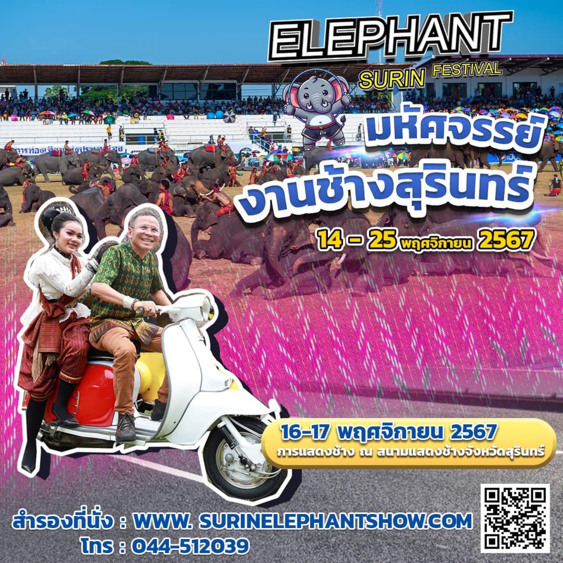 16-17 พฤศจิกายน 2567 : งานแสดงช้างจังหวัดสุรินทร์ ณ สนามแสดงช้าง อ.เมืองสุรินทร์