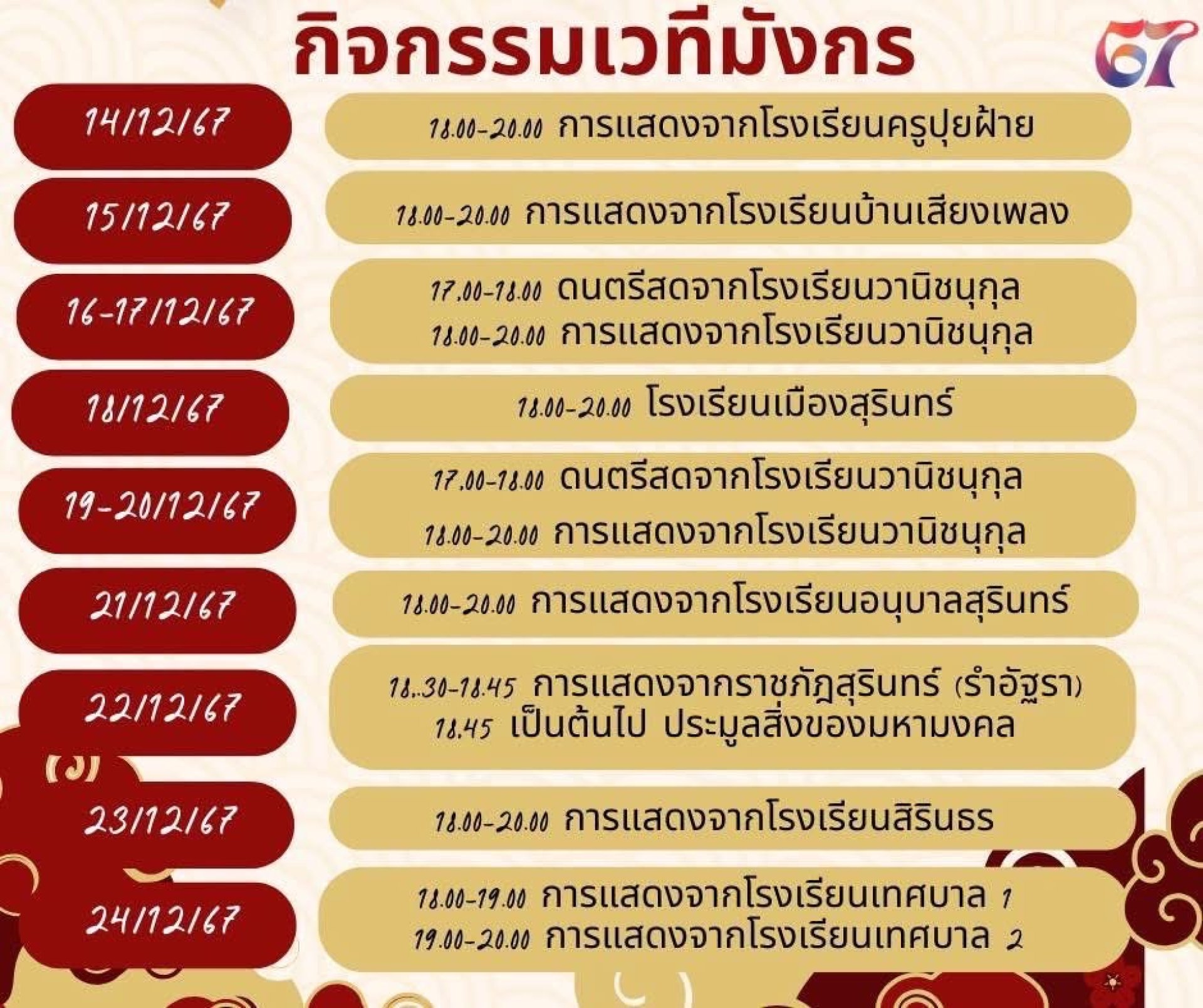 ตารางกิจกรรมงานงิ้วสุรินทร์ ประจำปี2567
