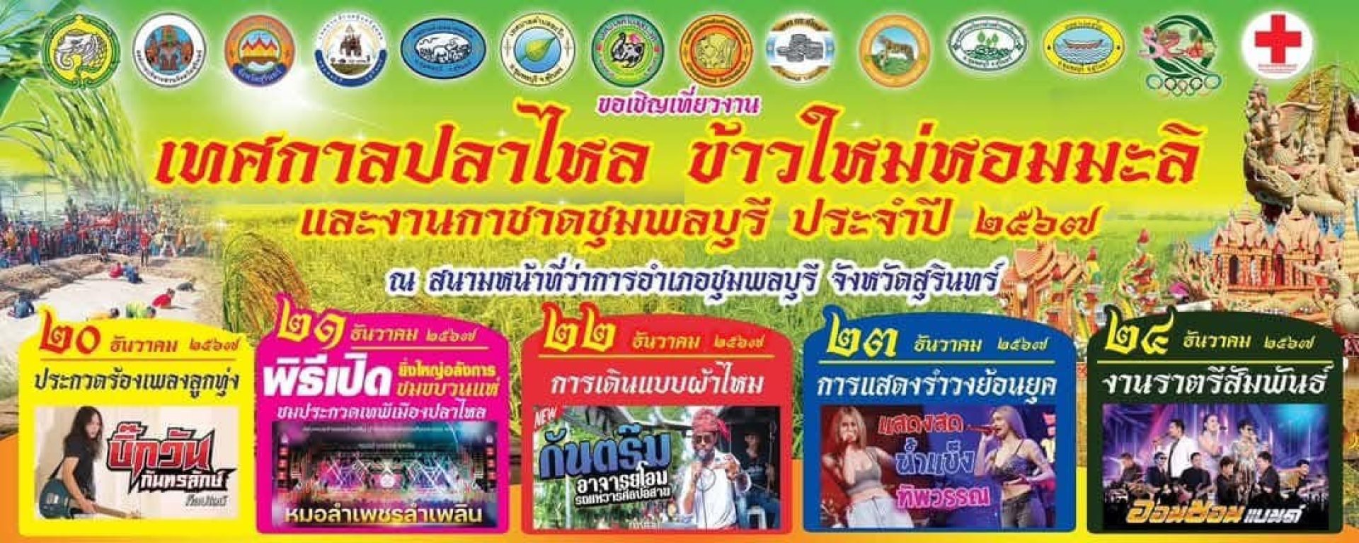 ขอเชิญเที่ยวงาน เทศกาลปลาไหล ข้าวใหม่หอมมะลิ และงานกาชาดชุมพลบุรี ประจำปี 2567