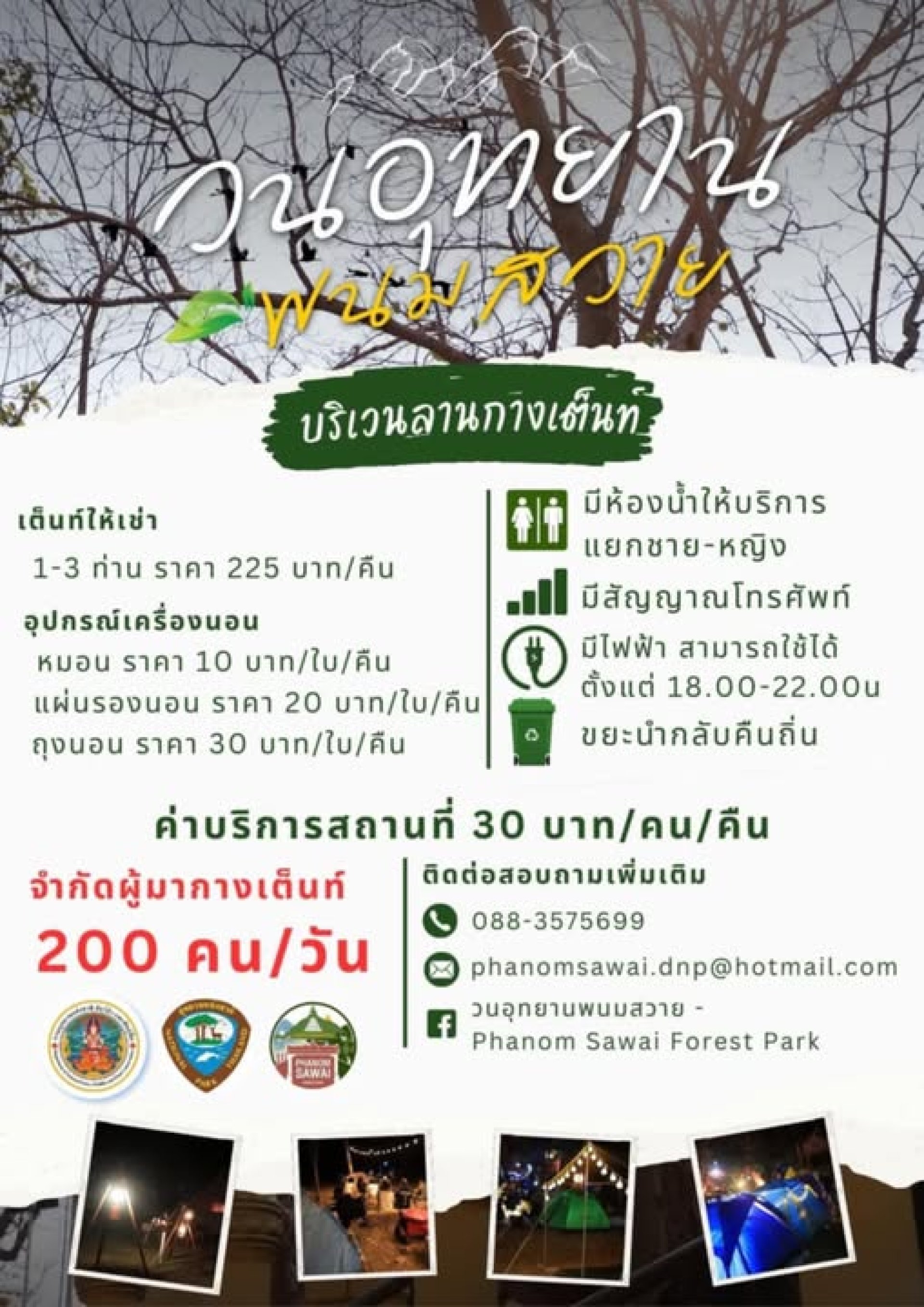 - เช่าเต็นท์วนอุทยานฯ 225 บาท/หลัง/คืน