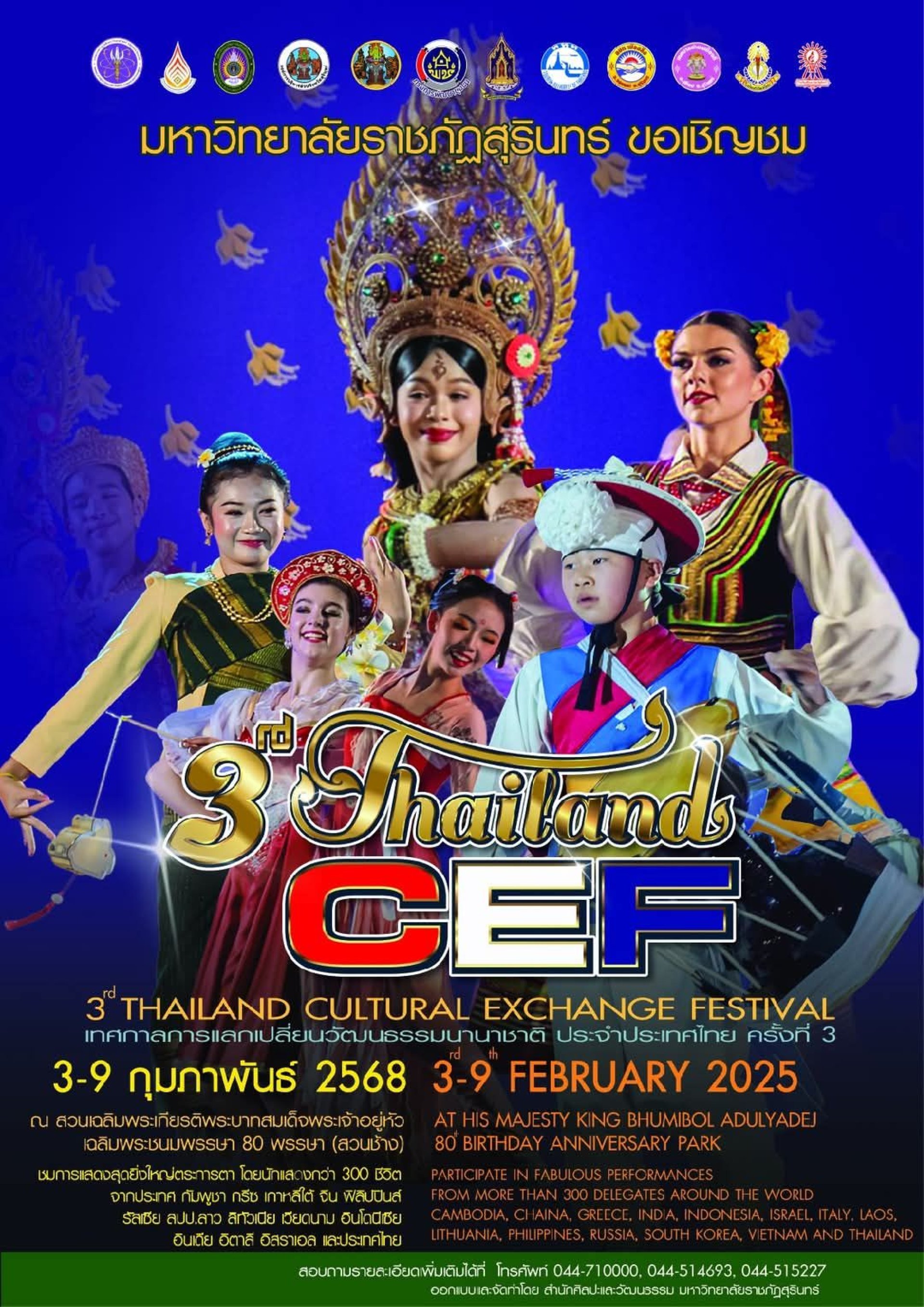 ระหว่างวันที่ 3 - 9 กุมภาพันธ์ 2568 จัดโดยมหาวิทยาลัยราชภัฏสุรินทร์ ร่วมกับภาคีเครือข่าย