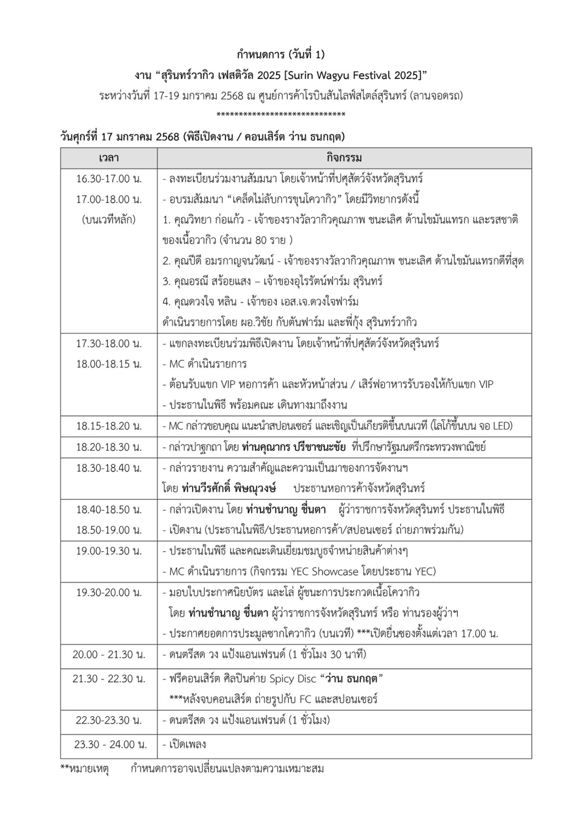 กำหนดการสุรินทร์วากิว เฟสติวัล 2025