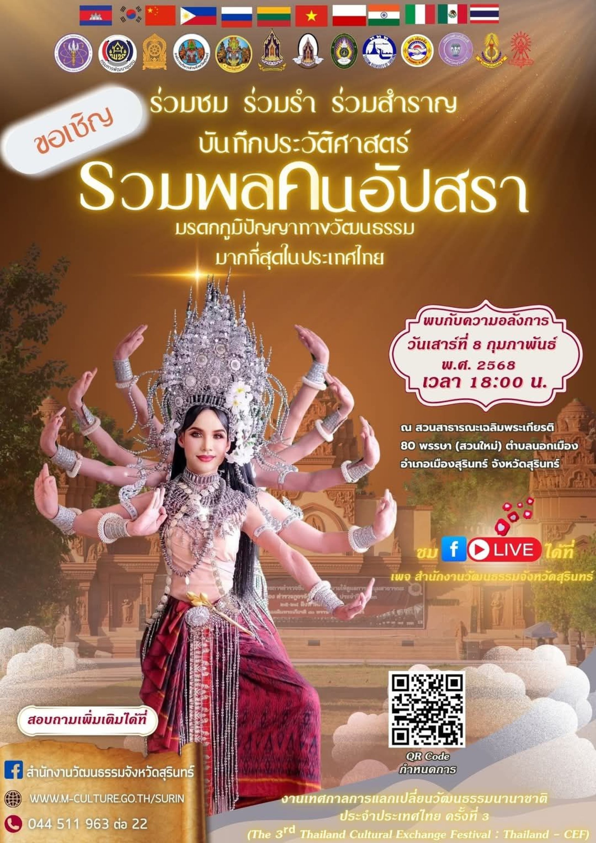 ขอเชิญ "ร่วมชม ร่วมรำ ร่วมสำราญ" ครั้งประวัติศาสตร์ "รวมพล คนอัปสรา" ภูมิปัญญาทางวัฒนธรรม
