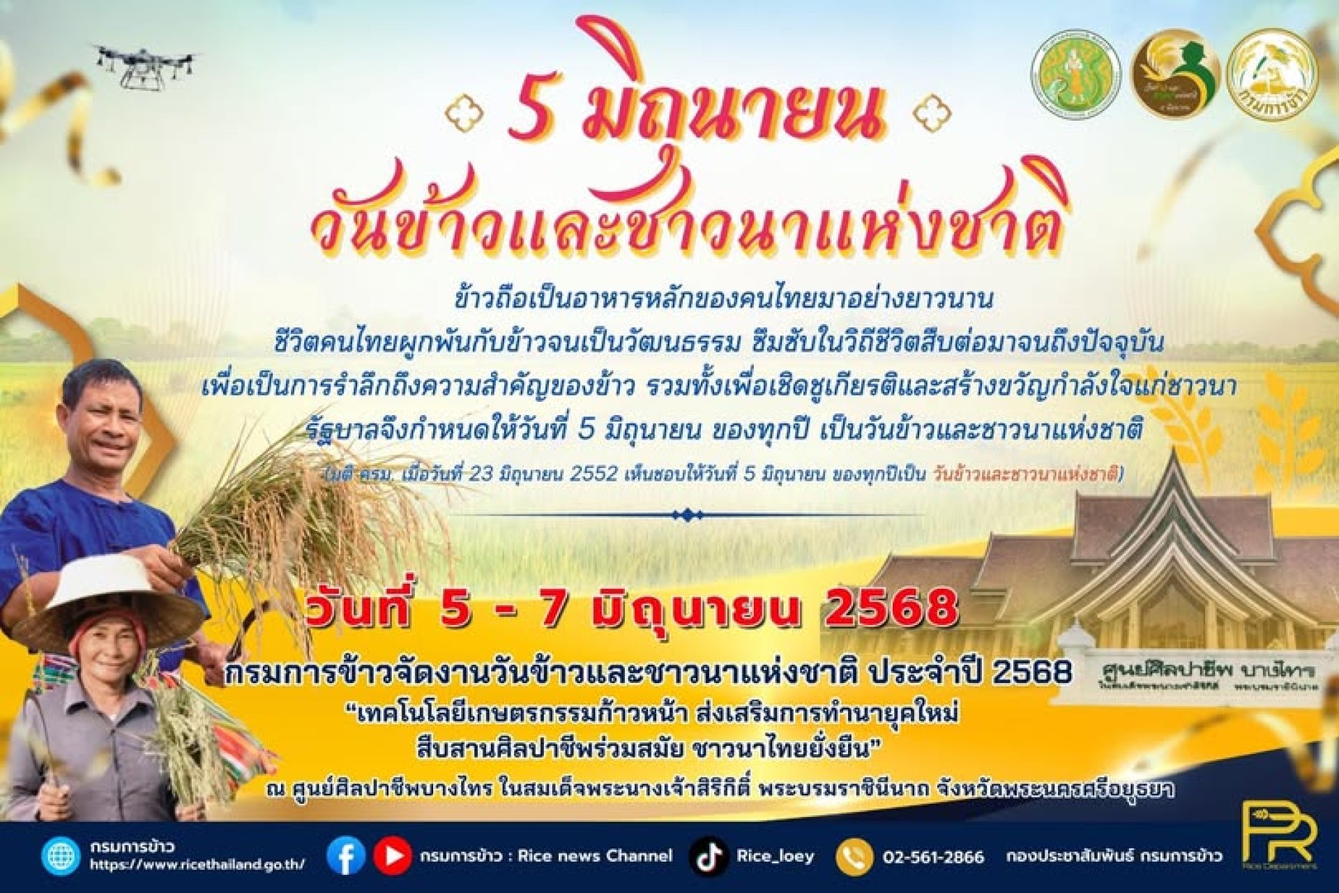 5 มิถุนายน วันข้าวและชาวนาแห่งชาติ
