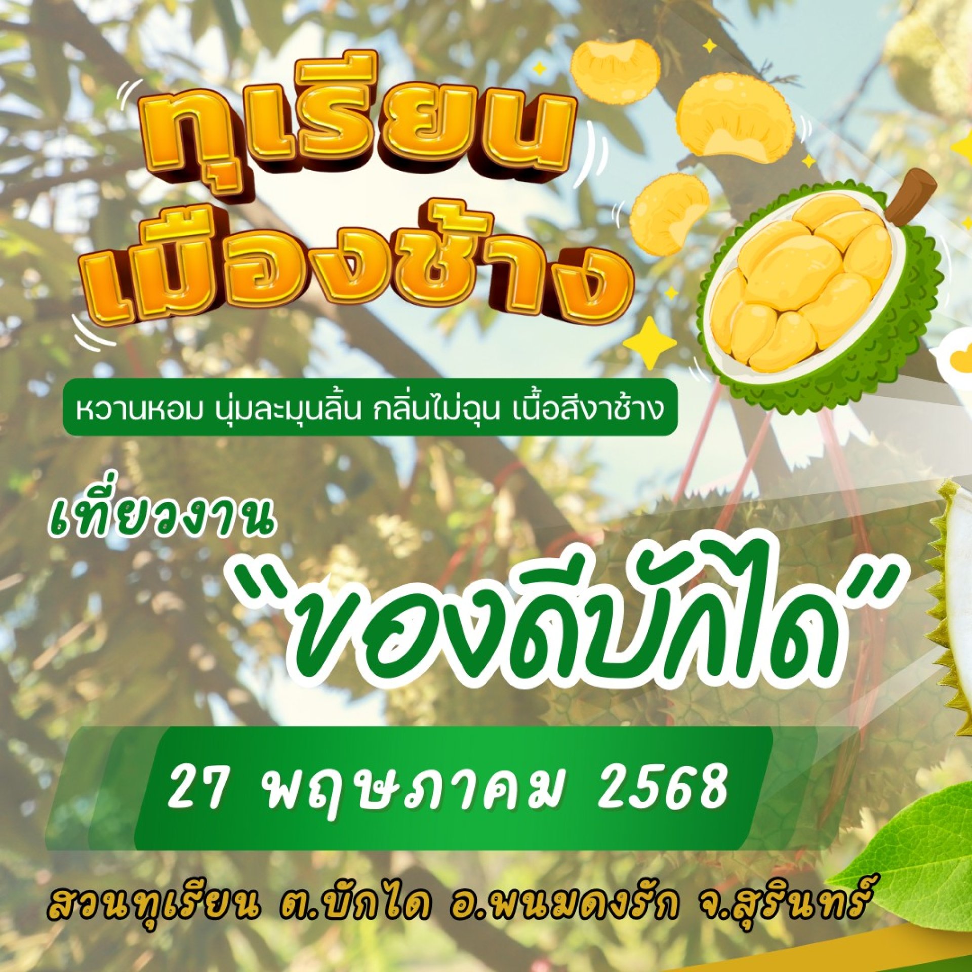ทีมงานประชาสัมพันธ์จังหวัดสุรินทร์ ชวนทุกคนมาตะลุยกินทุเรียนหอมๆ ที่ อ.พนมดงรัก! เตรียมตัว เตรียมกล้องให้พร้อม เพราะ #สายกิน #สายเที่ยว #สายชิล ต้องถูกใจสิ่งนี้!