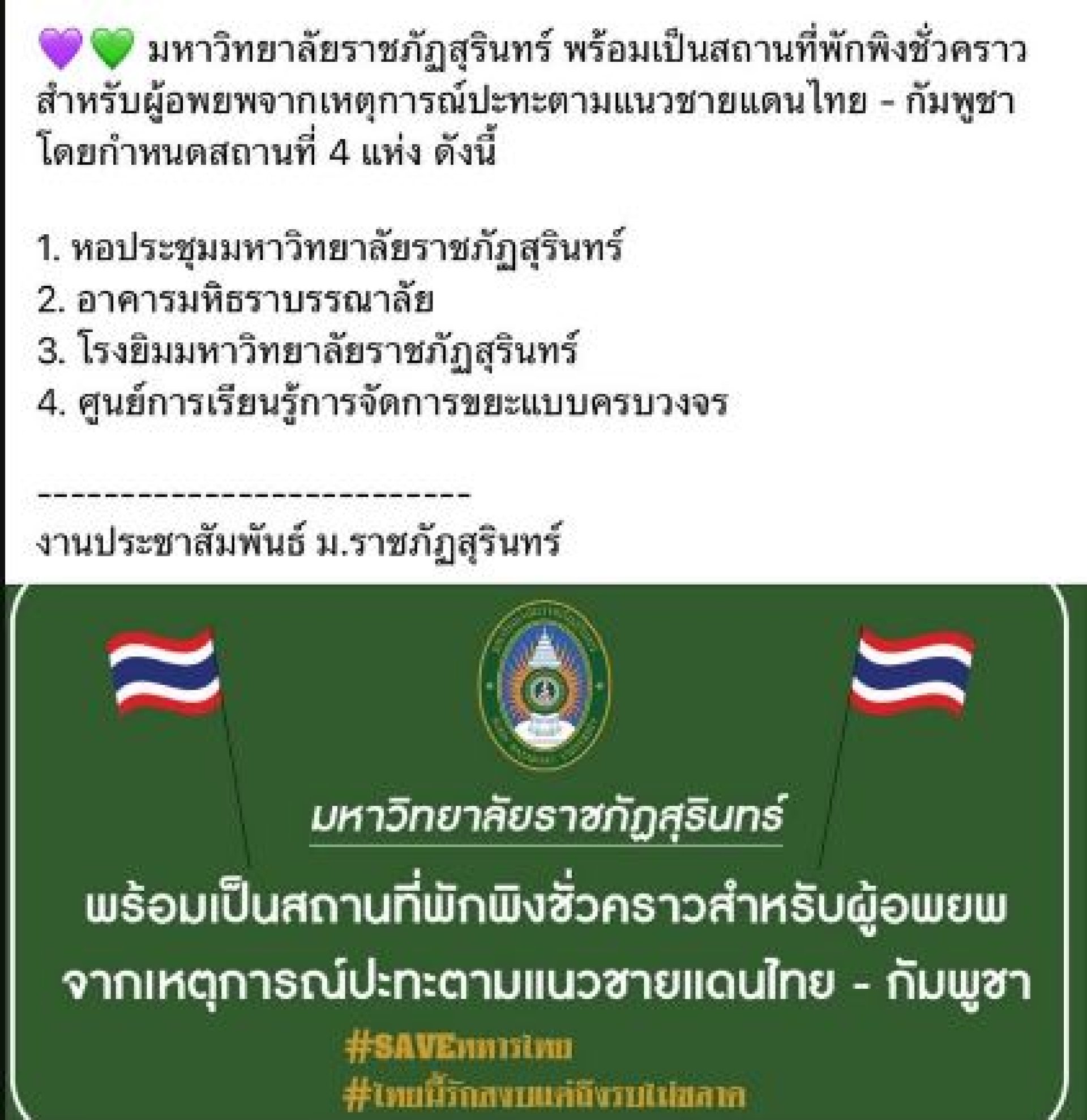 ศูนย์พักพิงชั่วคราว ม.ราชภัฎสุรินทร์