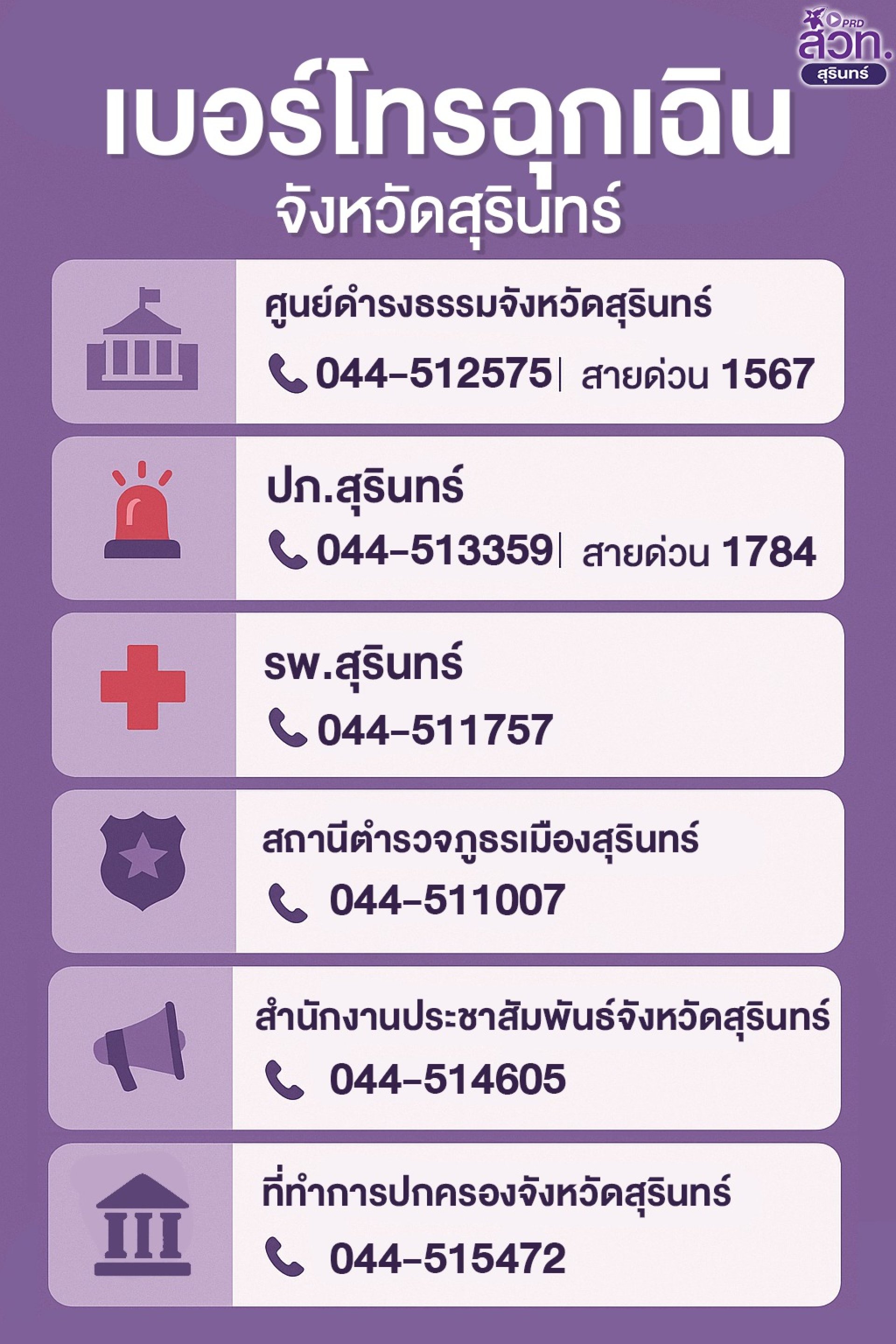 เบอร์โทรฉุกเฉินจังหวัดสุรินทร์