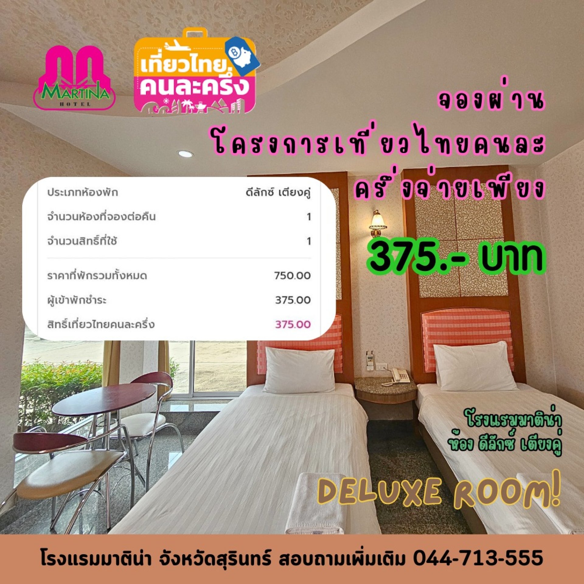 สิทธิ์โครงการ เที่ยวไทย คนละครึ่ง ใช้ได้ที่ โรงแรมมาติน่า จังหวัดสุรินทร์