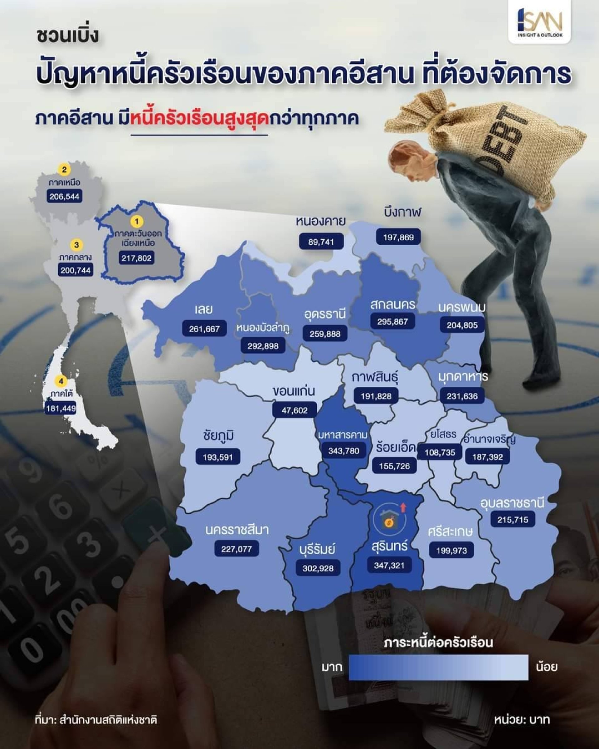 ปัญหาหนี้สินครัวเรือนของชาวอีสาน ภาคอีสานจะมีหนี้สินครัวเรือนที่มากกว่าทุกภาค แล้วเพราะอะไรชาวอีสานถึงเป็นหนี้เยอะ
