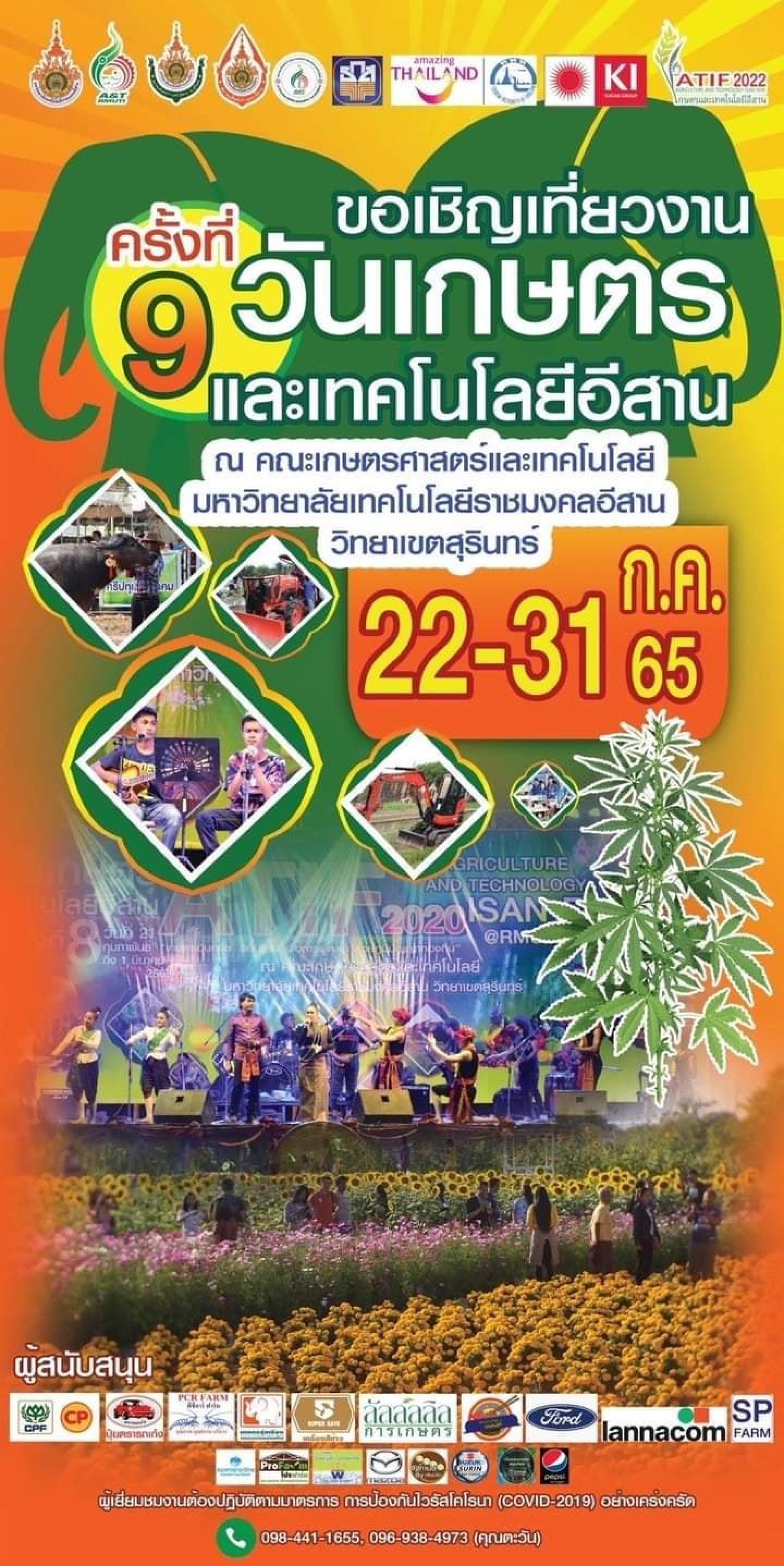 คณะเกษตรศาสตร์และเทคโนโลยี มหาวิทยาลัยเทคโนโลยีราชมงคลอีสาน วิทยาเขตสุรินทร์ กำหนดจัดงานวันเกษตรและเทคโนโลยีอีสาน ครั้งที่ 9 ประจำปี 2565 ภายใต้สโลแกน เกษตรอินทรีย์ สู่วิถีนวัตกรรมใหม่ หลังมหันตภัยโควิด ระหว่างวันที่ 22-31 กรกฎาคม 2565 ณ มหาวิทยาลัยเทคโนโลยีราชมงคลอีสาน วิทยาเขตสุรินทร์