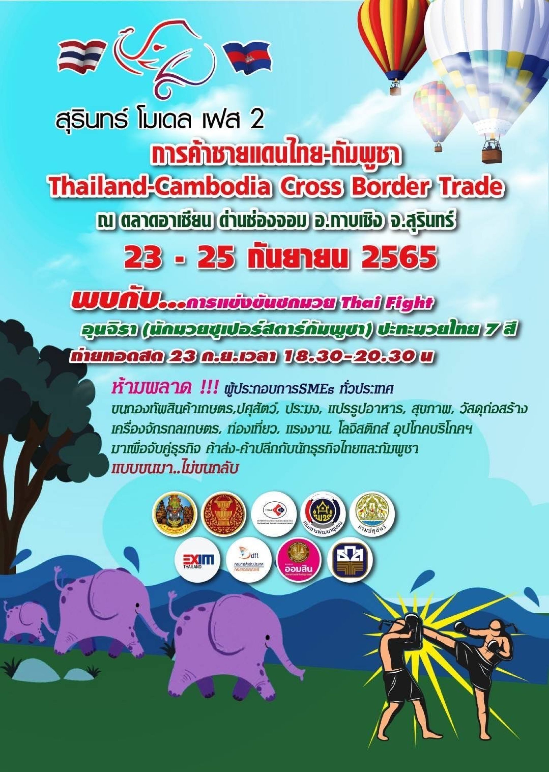 การจัด "มหกรรมค้าชายแดน สุรินทร์ โมเดล" ในครั้งนี้เป็นครั้งที่ 2 ของการจัดขึ้นระหว่างวันที่ 23-25 กันยายน 2565 ณ ตลาดการค้าชายแดนไทย-กัมพูชา ด่านช่องจอม จังหวัดสุรินทร์ มีวัตถุประสงค์เพื่อให้ผู้ประกอบการรายย่อยและผู้ประกอบการค้าชายแดนได้มีการพบกับหน่วยงานภาครัฐ ภาคเอกชน และสถานประกอบการ เพื่อเพิ่มโอกาสในการประกอบอาชีพและการเข้าถึงแหล่งเงินทุน และนำโมเดลไปต่อยอดให้ครบถ้วนทุกจังหวัดต่อไป