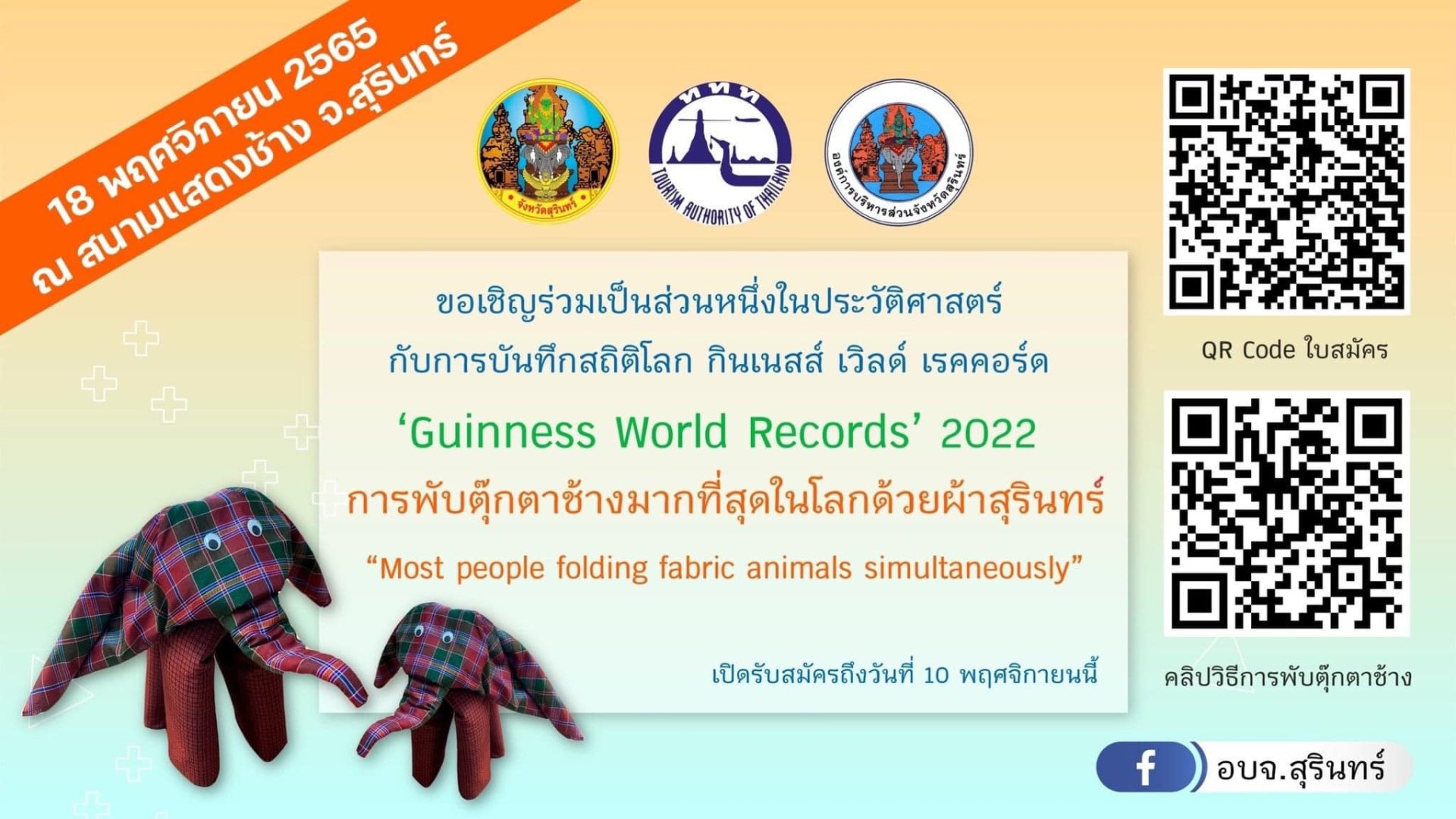 เชิญชวนทุกท่านที่สนใจร่วมเป็นหนึ่งในหน้าประวัติศาสตร์ของชาวสุรินทร์