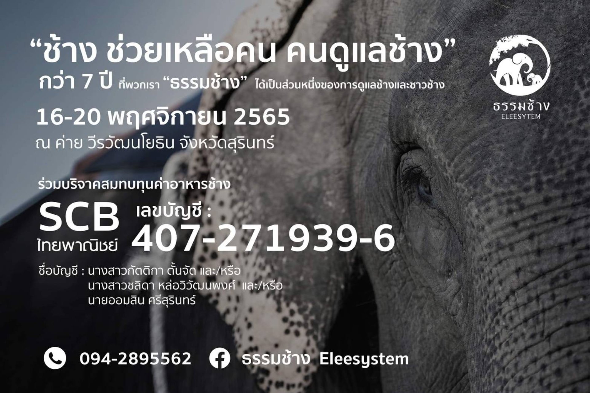 ร่วมมอบข้าวสาร อาหารแห้ง และเวชภัณฑ์ช้าง