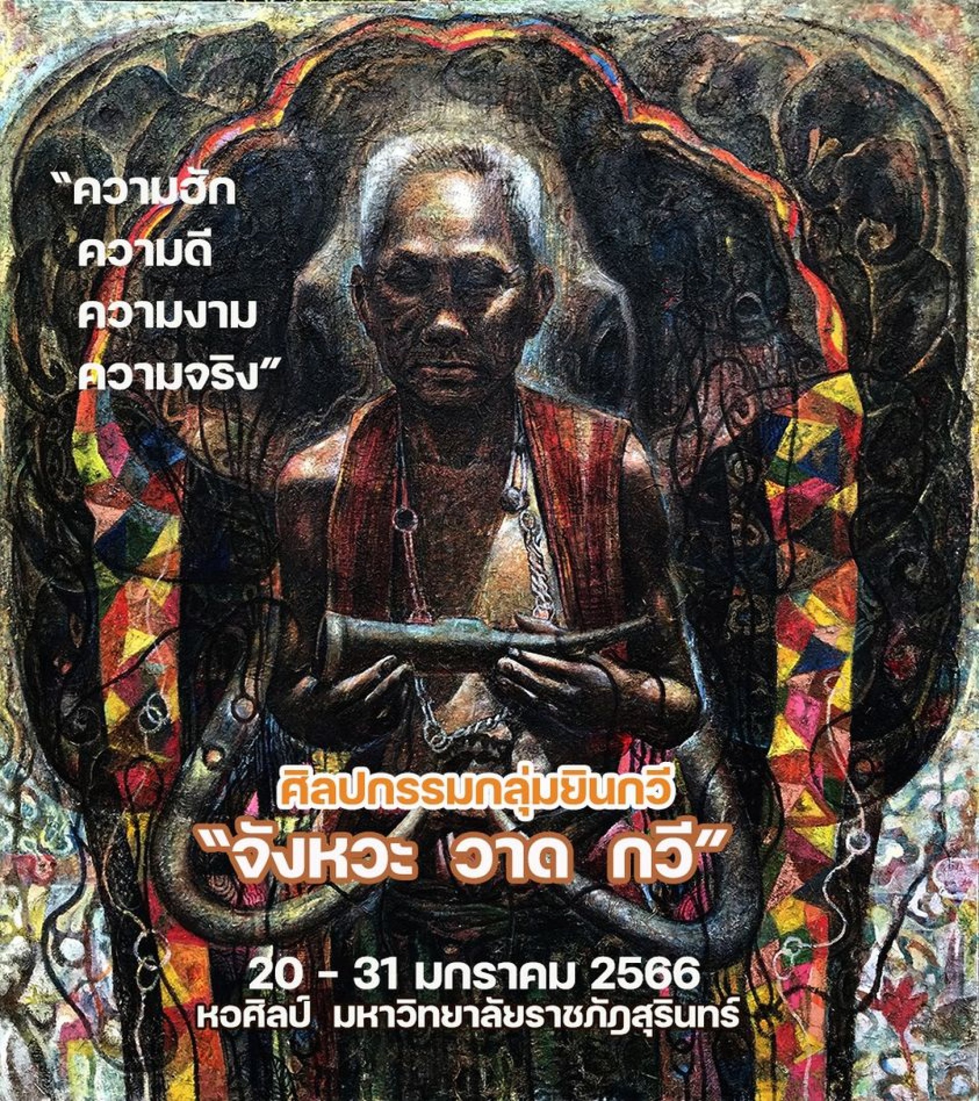 ศิลปกรรมกลุ่มยินกวี "จังหวะ วาด กวี" ระหว่างวันที่ 20 - 31 มกราคม 2566 ณ หอศิลป์ มหาวิทยาลัยราชภัฏสุรินทร์