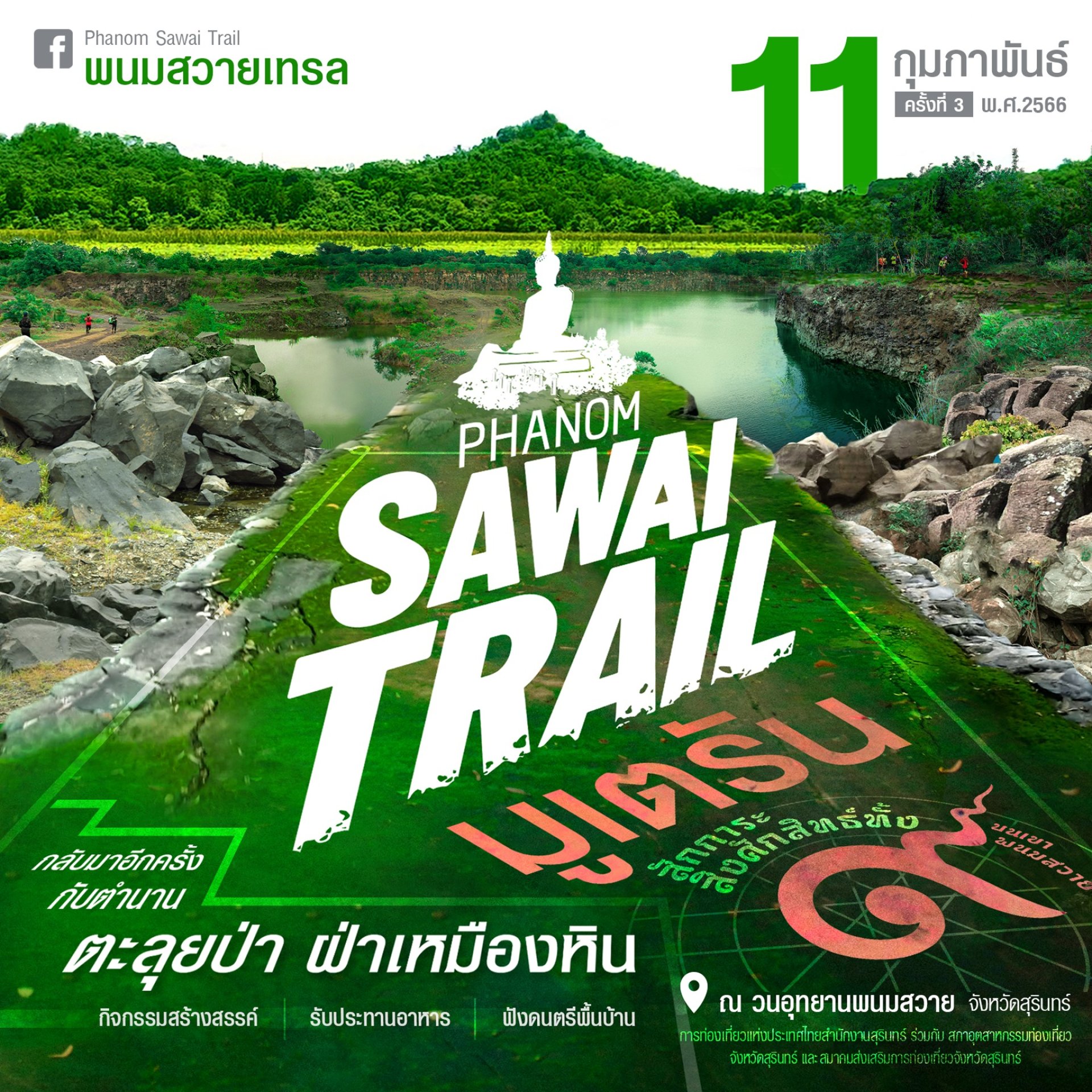 กับงาน พนมสวายเทรล บัวขาว มูเตรัน โดยมีให้เลือกตะลุยถึง 3 ระยะ ตั้งแต่ 6กม 12 กม และ 24 กม ในแต่ละเส้นทางจะมีความยากง่ายแตกต่างกันตามลำดับ