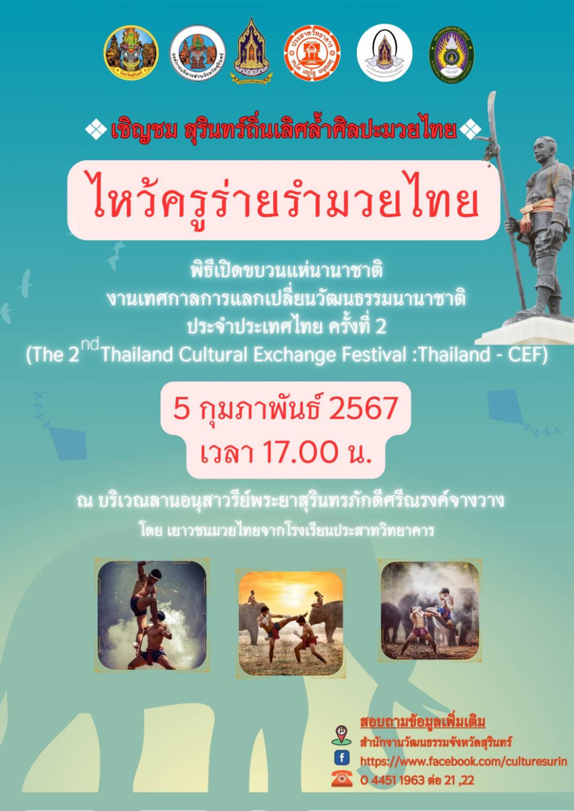 สุรินทร์ขอเชิญชมไหว้ครูร่ายรำมวยไทย ในงานเทศกาลการแลกเปลี่ยนวัฒนธรรมนานาชาติ ประจำประเทศไทย ครั้งที่ 2