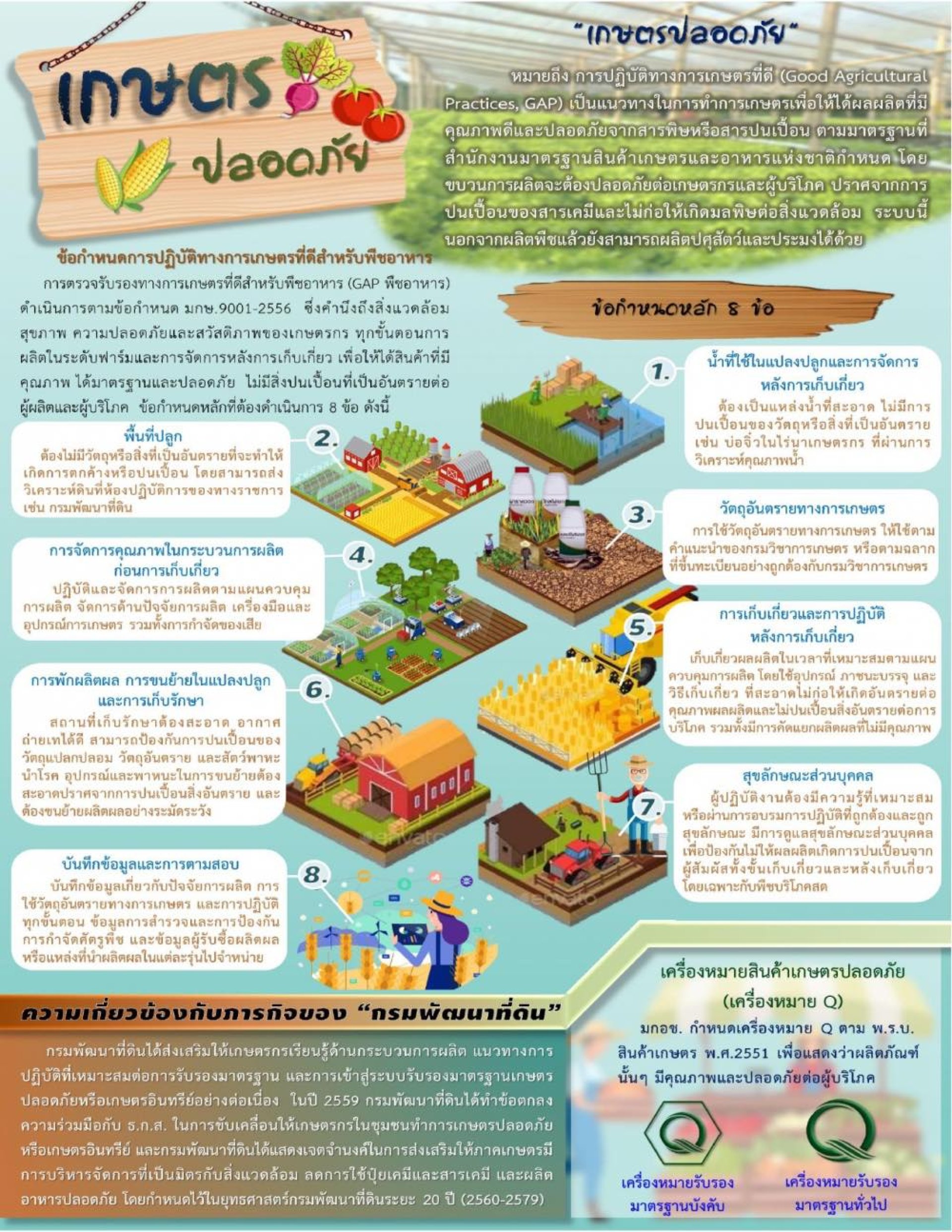 ต้องไม่มีวัตถุหรือสิ่งที่เป็นอันตรายที่จะทำให้เกิดการตกค้างหรือปนเปื้อน โดยสามารถส่งวิเคราะห์ดินที่ห้องปฏิบัติการของทางราชการ เช่น กรมพัฒนาที่ดิน