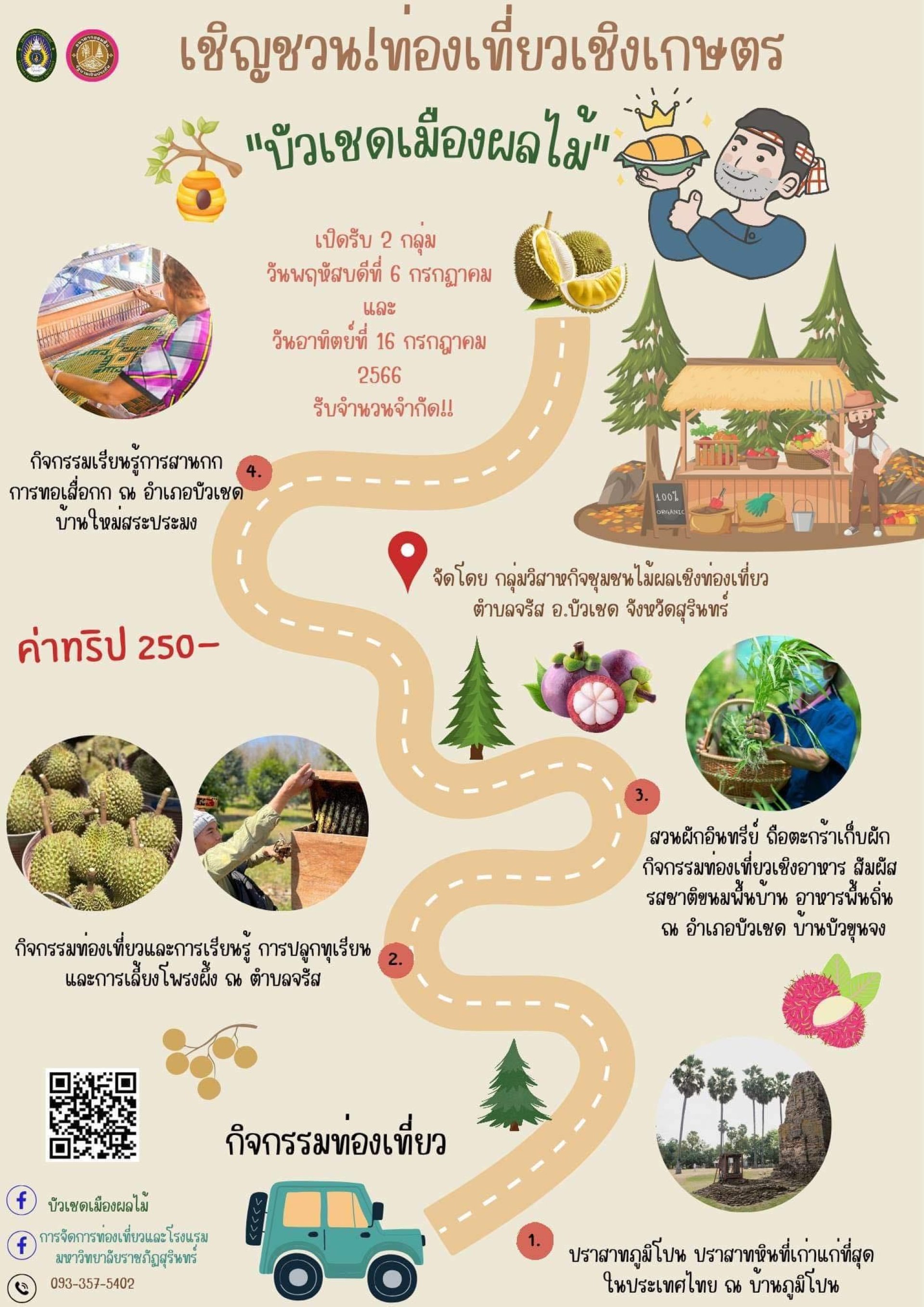 จัดโดย กลุ่มวิสาหกิจชุมชนไม้ผลเชิงท่องเที่ยว ตำบลจรัส อำเภอบัวเชด จังหวัดสุรินทร์