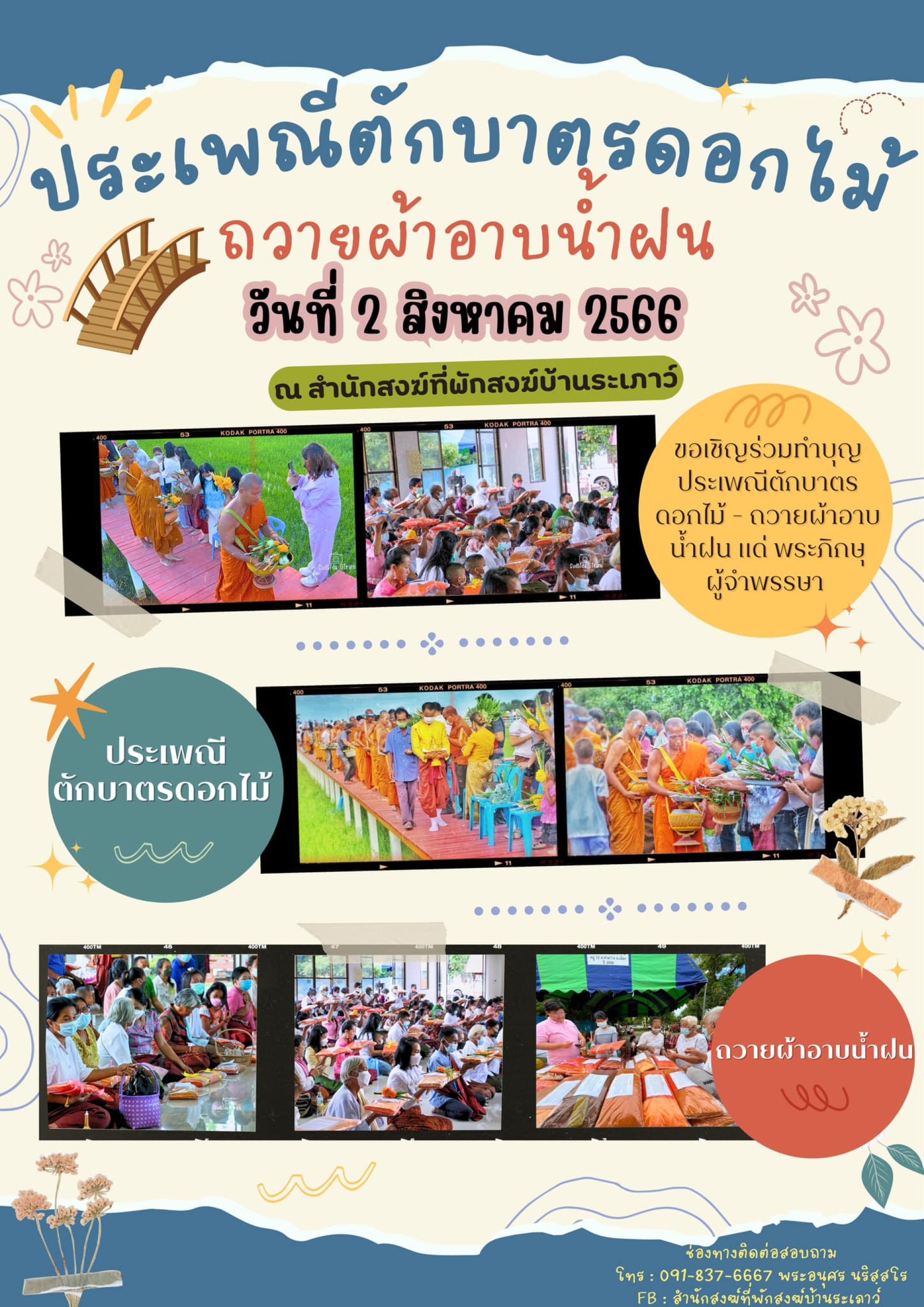 ประเพณีตักบาตรดอกไม้ ถวายผ้าอาบน้ำฝน ประจำปี2566