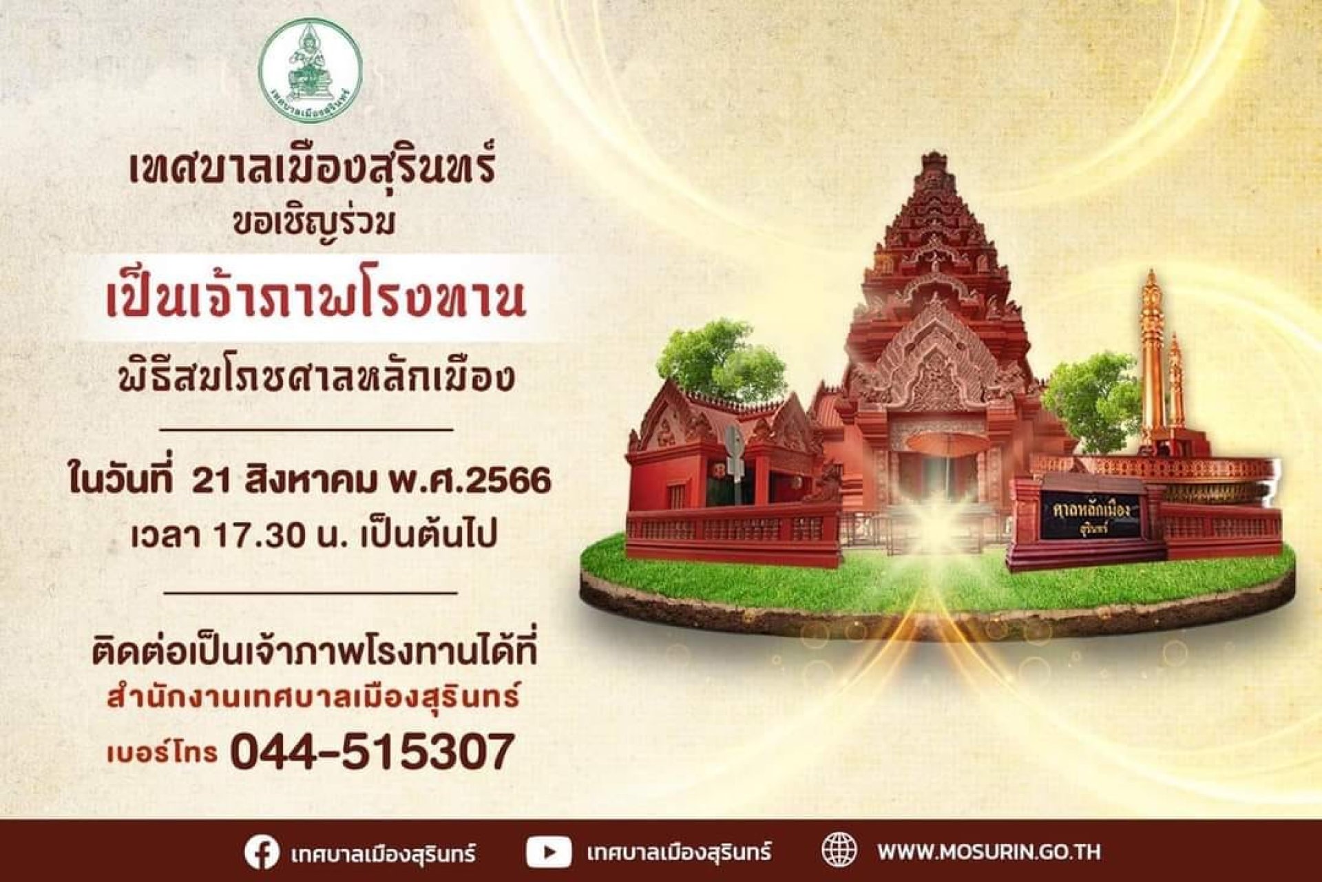 สุรินทร์ขอเชิญร่วมเป็นเจ้าภาพโรงทาน พิธีสมโภชศาลหลักเมือง