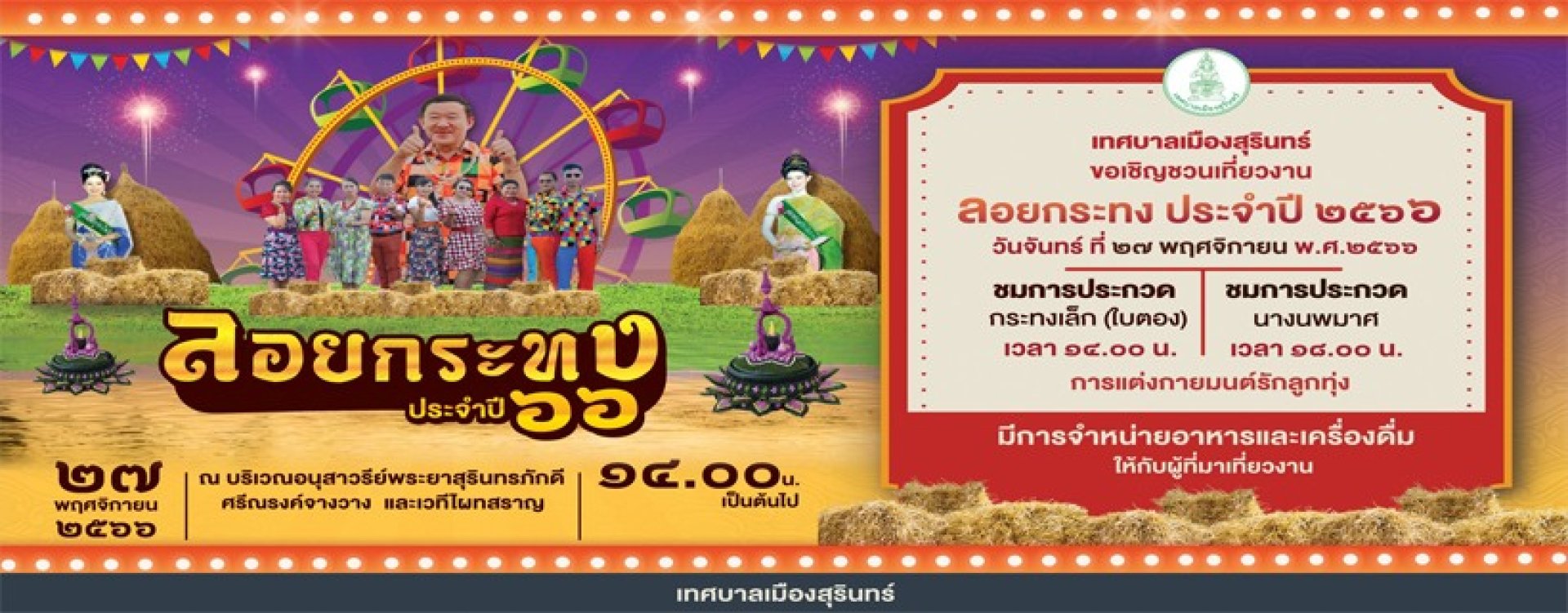 เทศบาลเมืองสุรินทร์ ขอเชิญเที่ยวงาน "ลอยกระทง" ประจำปี 2566