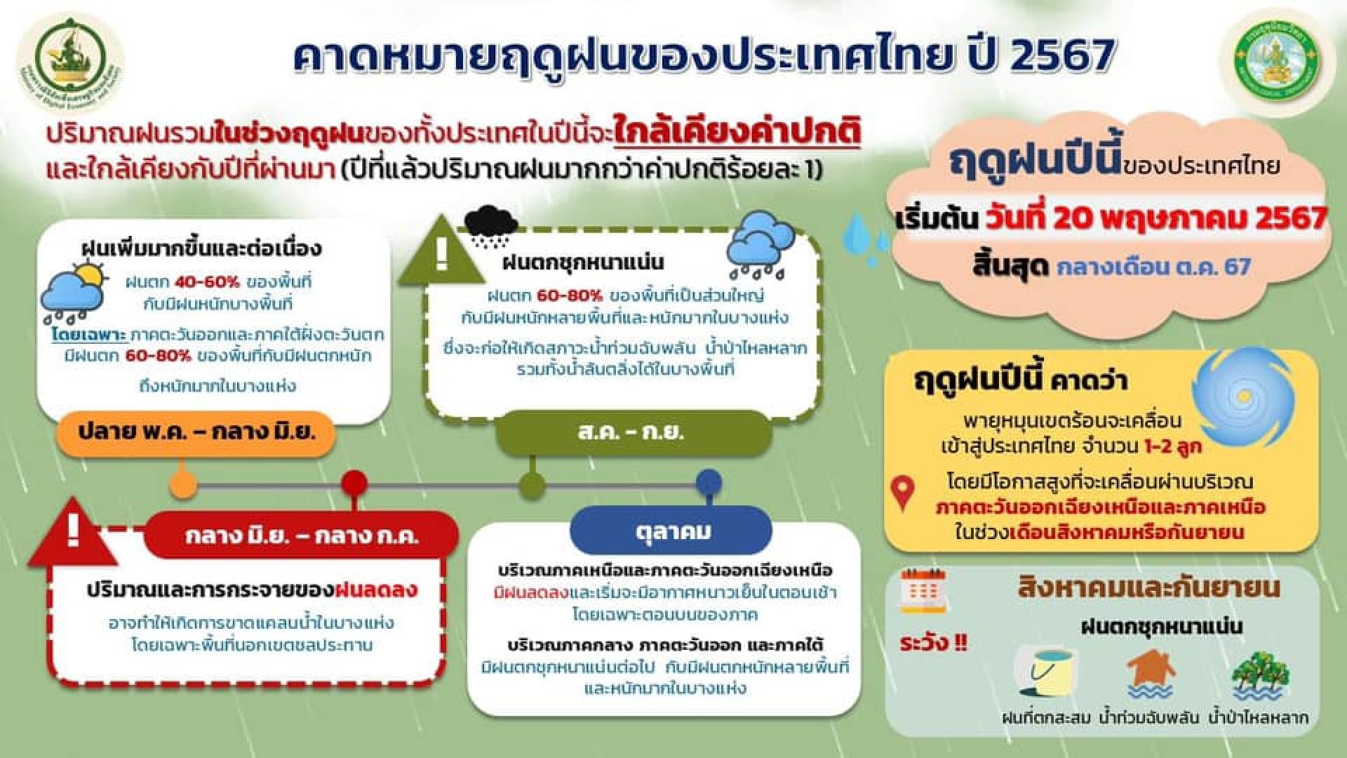คาดหมายฤดูฝนของประเทศไทย 2567