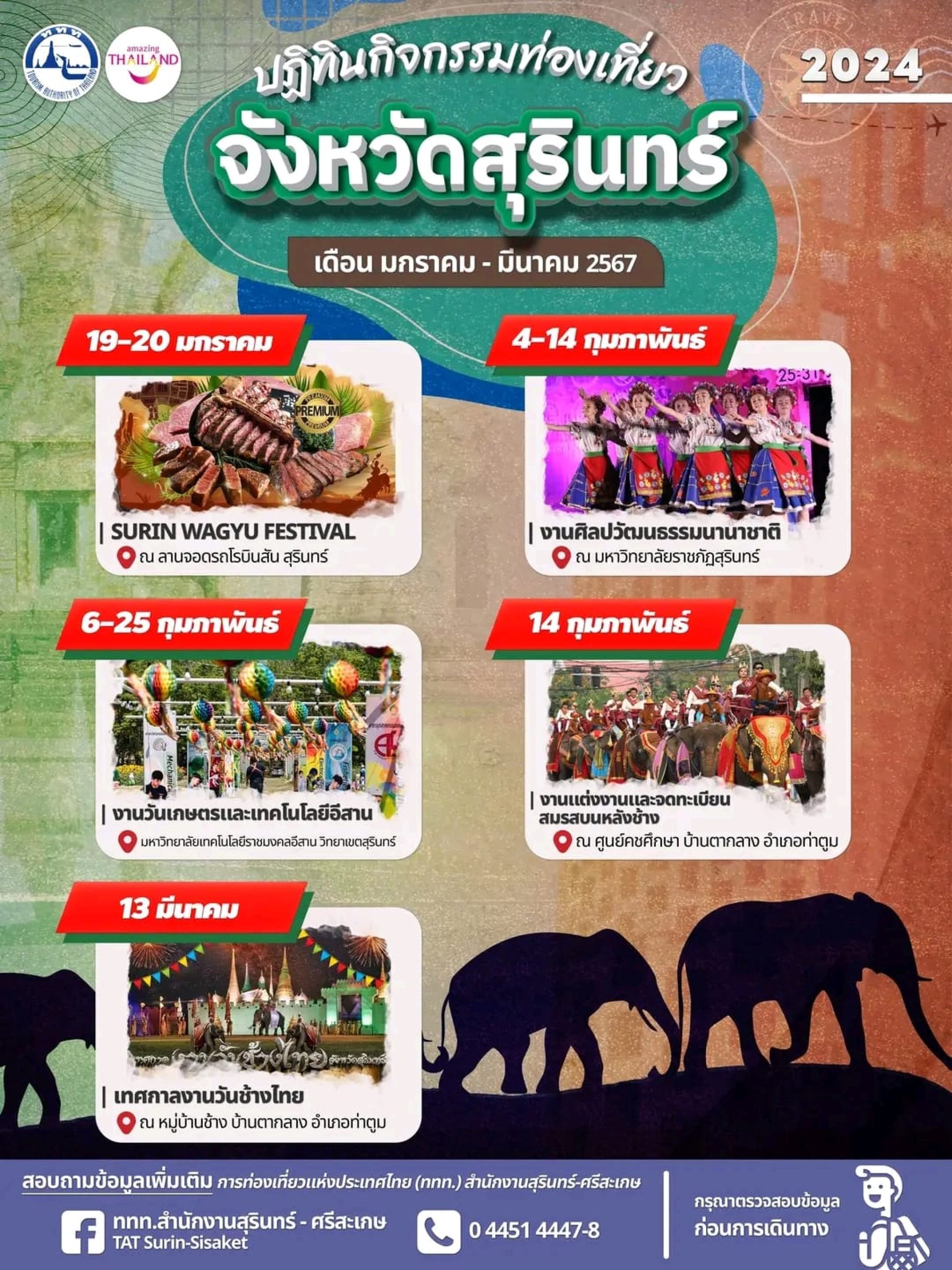 ปฏิทินกิจกรรมท่องเที่ยวจังหวัดสุรินทร์ เดือนม.ค-มี.ค.2567
