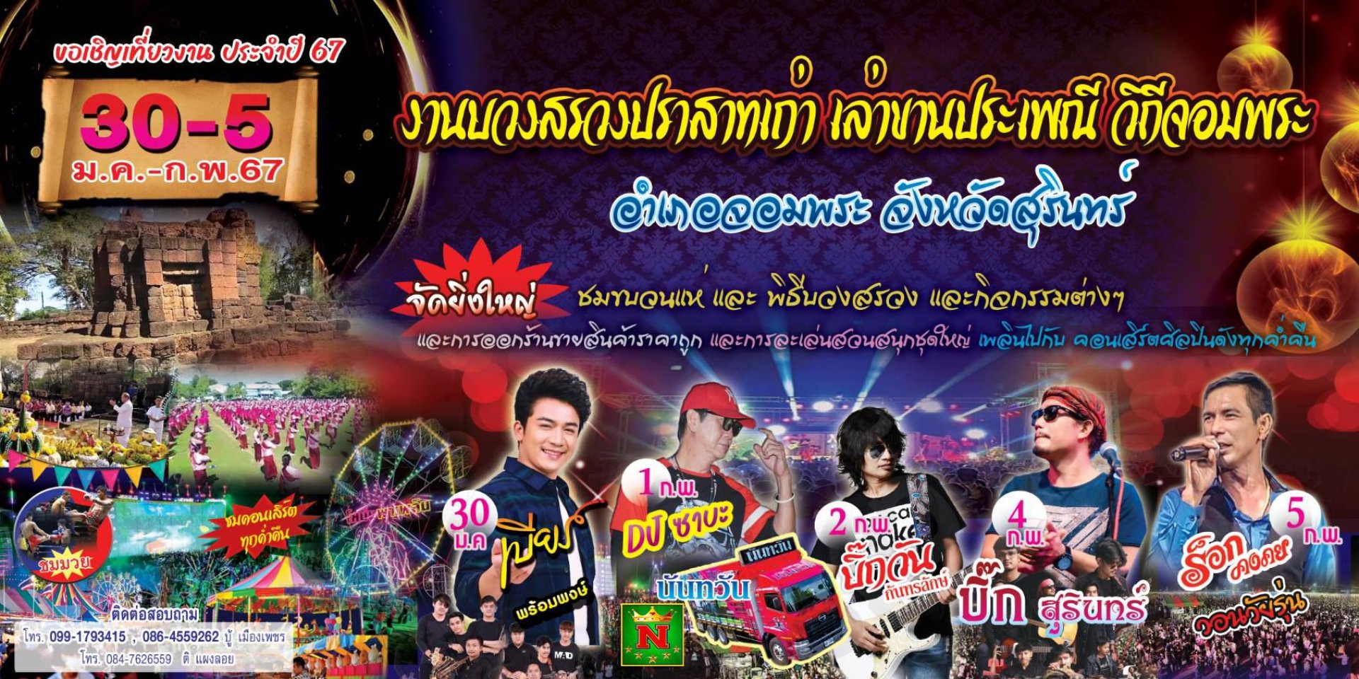 งาน "บวงสรวงปราสาทเก่า เล่าขานประเพณี วิถีจอมพระ" ประจำปี 2567 ณ บริเวณสนามเทศบาลอำเภอจอมพระ ต.จอมพระ อ.จอมพระ จ.สุรินทร์