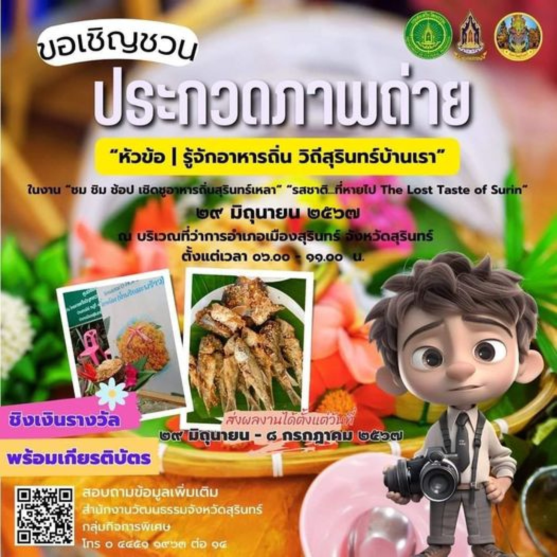 ขอเชิญชวนเข้าร่วมประกวดภาพถ่าย รู้จักอาหารถิ่น วิถีสุรินทร์บ้านเรา